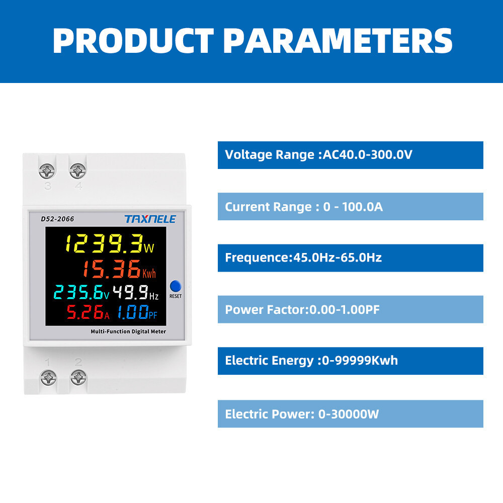 D52-2066 AC monitor 110V 220V 100A แรงดันไฟฟ้า Power Factor KWH ความถี่พลังงานเมตร
