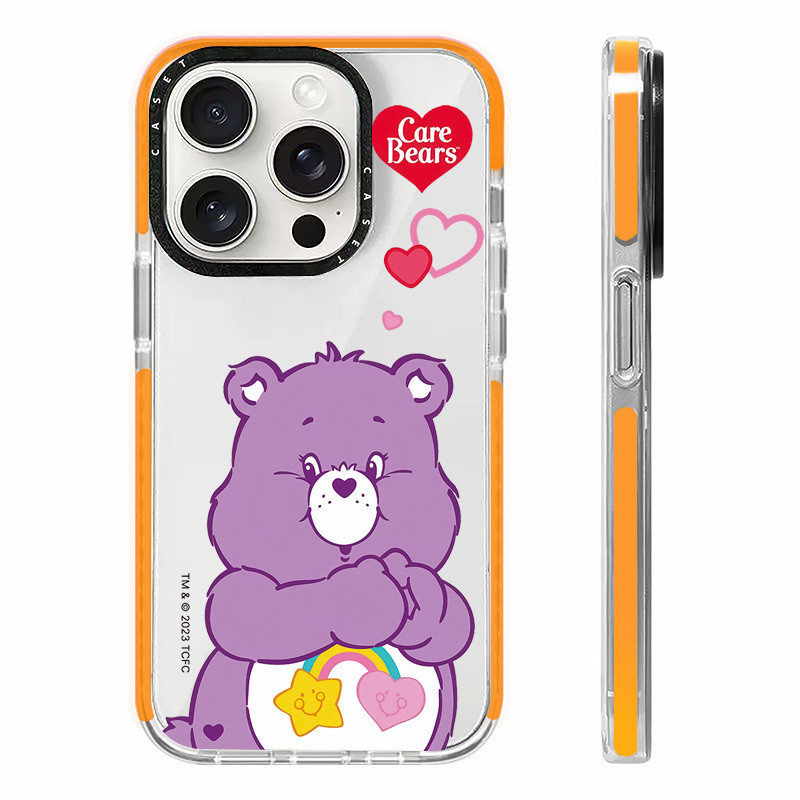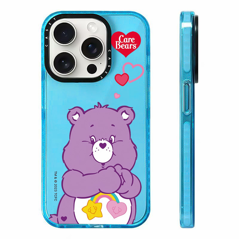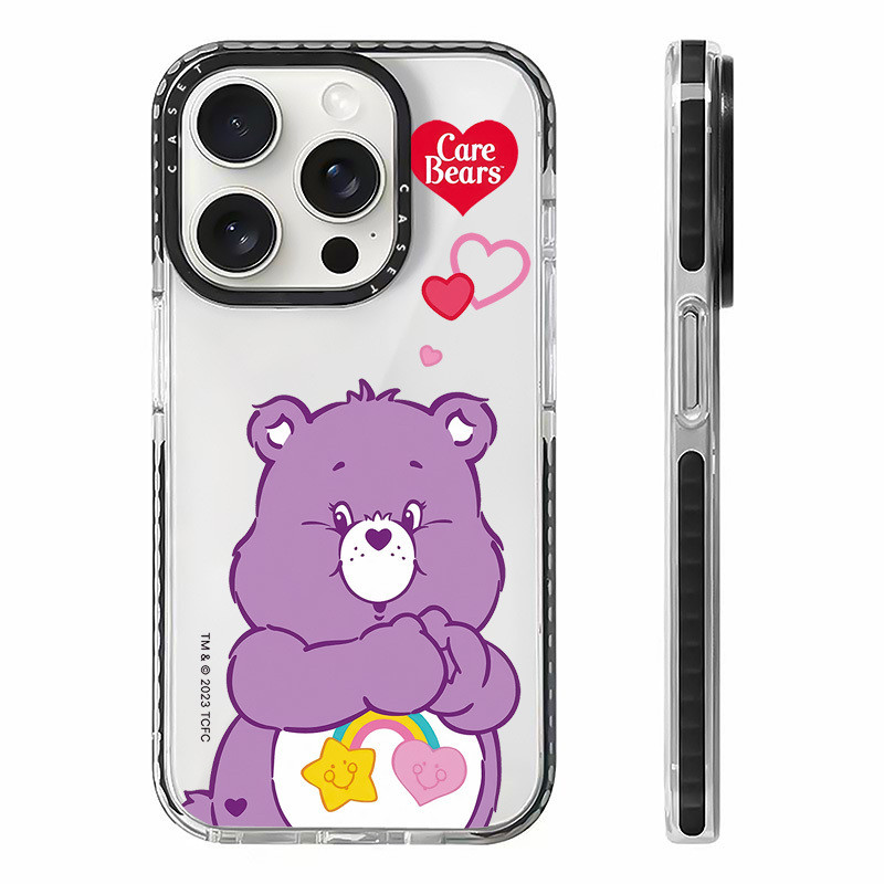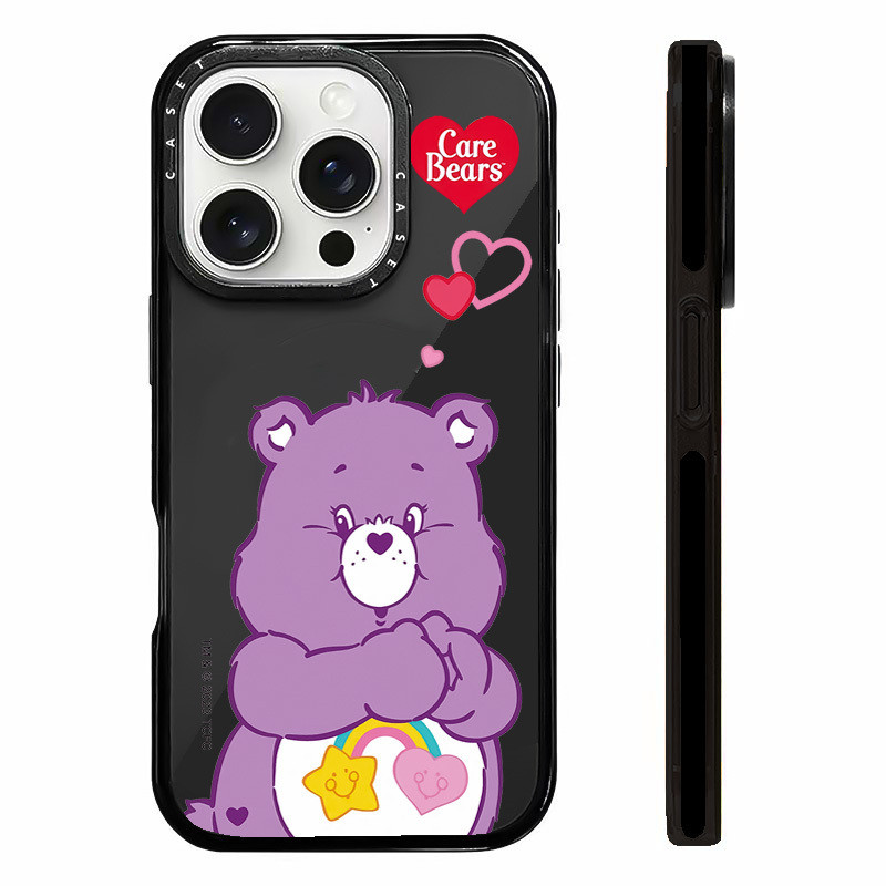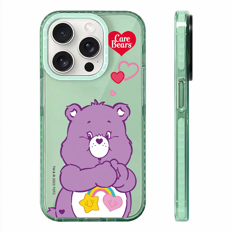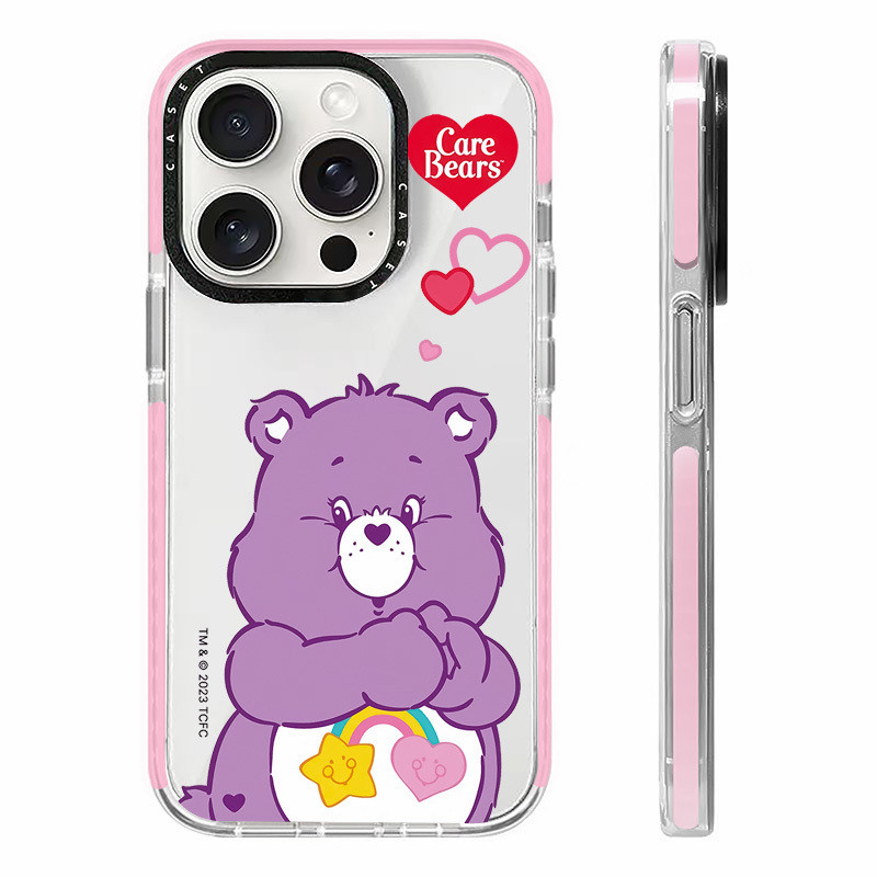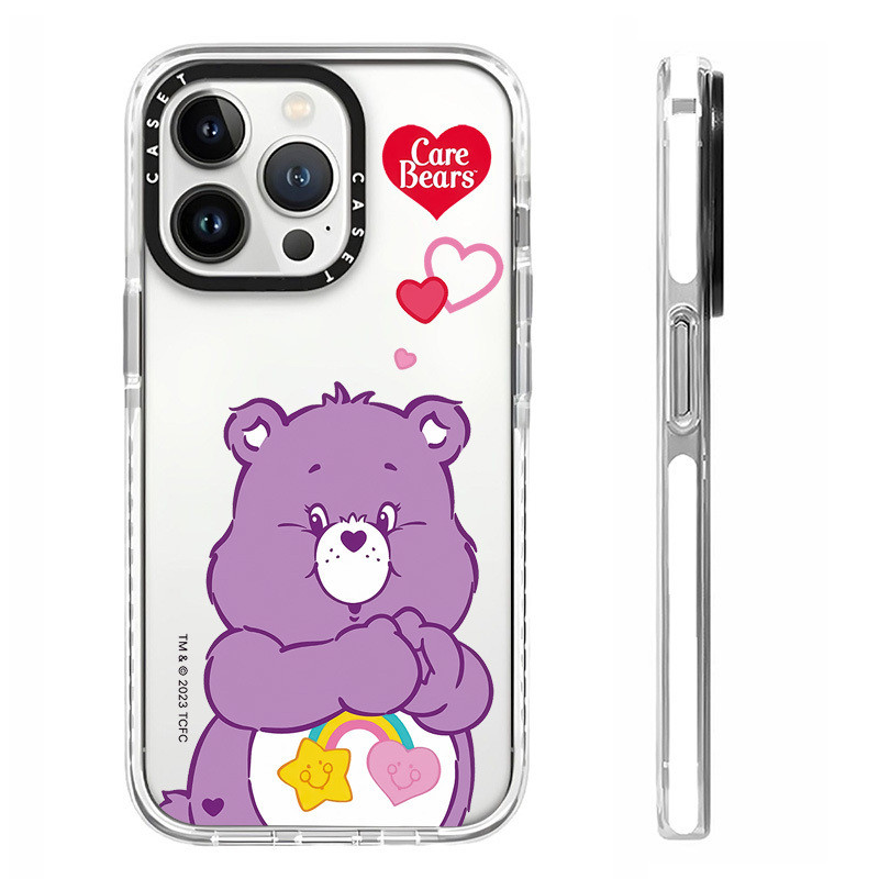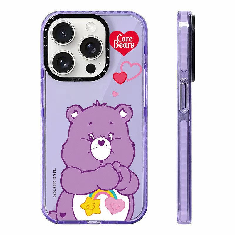 น่ารักการ์ตูนสีม่วง Care Bears กรณีเข้ากันได้สําหรับ IPhone 11 14 15 16 Pro Max 12 13 Mini ฝาครอบ X XR XS Max ซิลิโคนนุ่มกันชนใส SE 2022 6 7 8 Plus ปลอกกันกระแทก