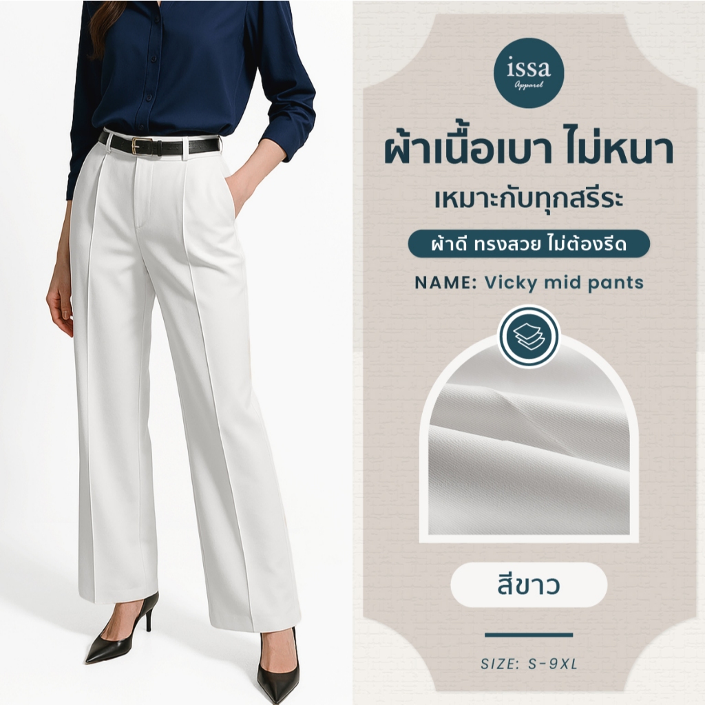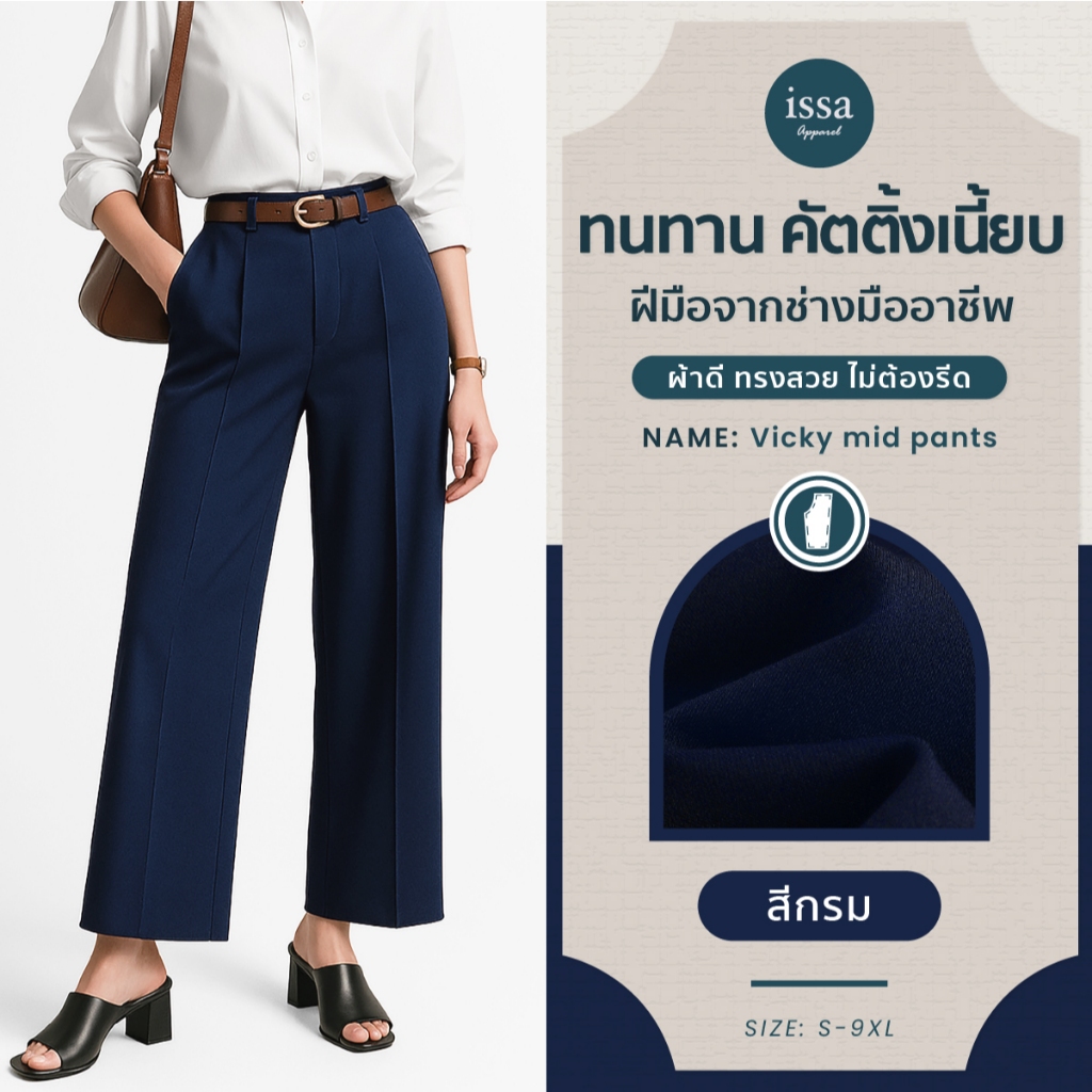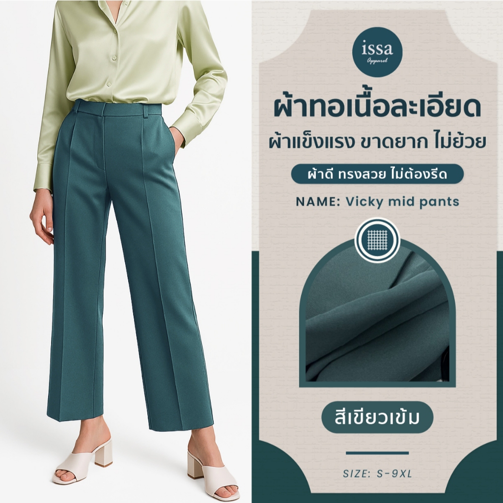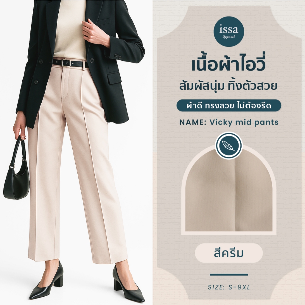 Vicky mid ทรงกระบอกกลาง (S-9XL) ส่งด่วน+ส่งฟรี กางเกงทำงานผู้หญิง ใส่ทำงาน ผ้าดีทรงสวยไม่ต้องรีด กางเกงขายาว