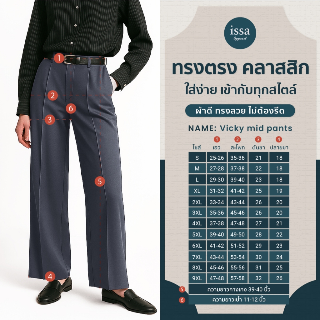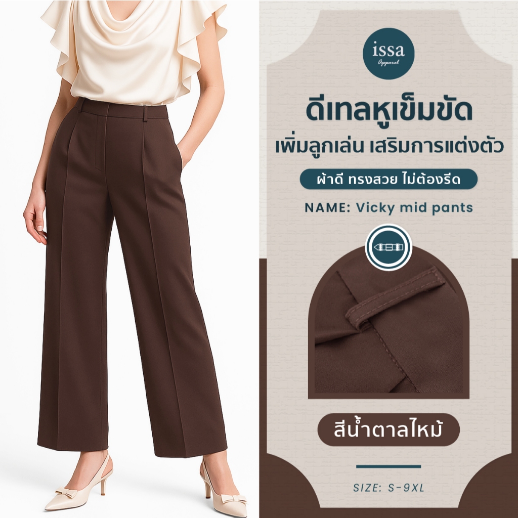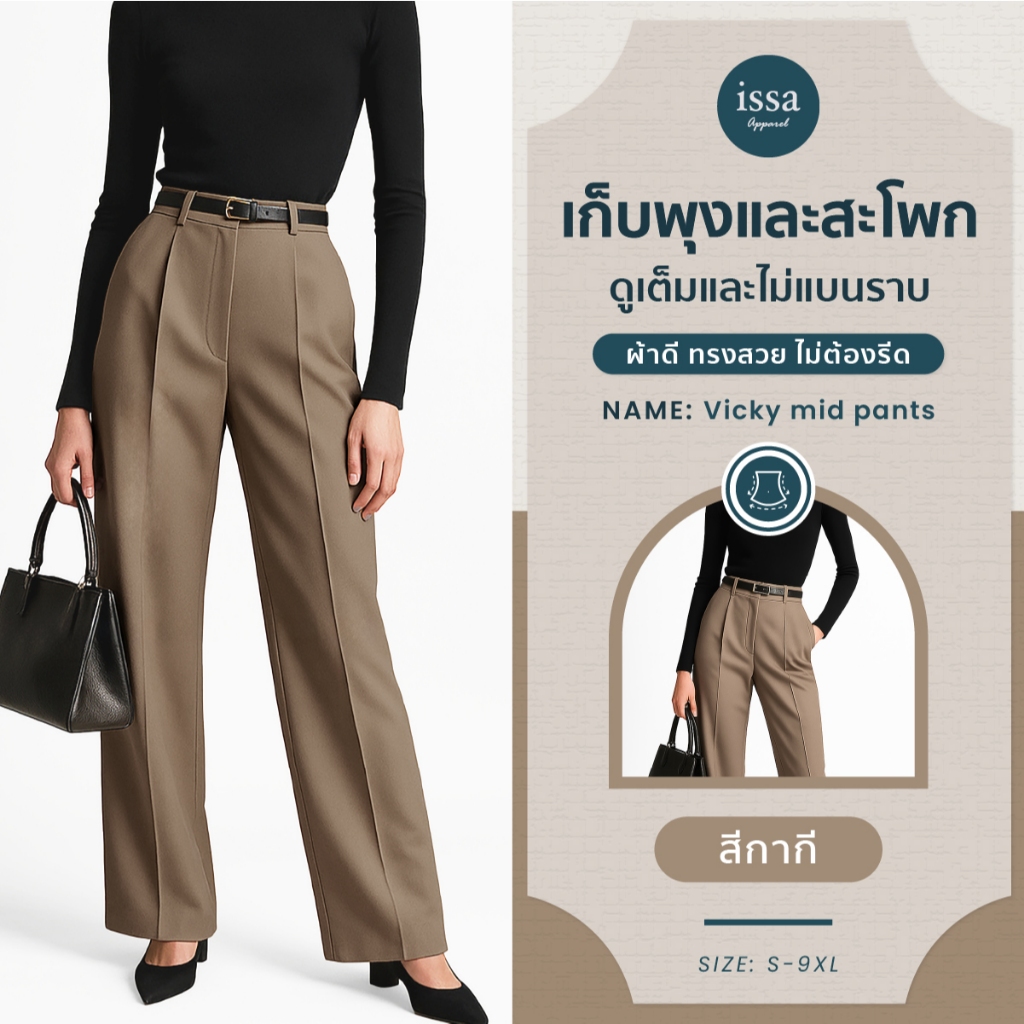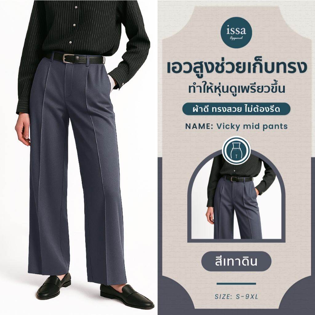 Vicky mid ทรงกระบอกกลาง (S-9XL) ส่งด่วน+ส่งฟรี กางเกงทำงานผู้หญิง ใส่ทำงาน ผ้าดีทรงสวยไม่ต้องรีด กางเกงขายาว