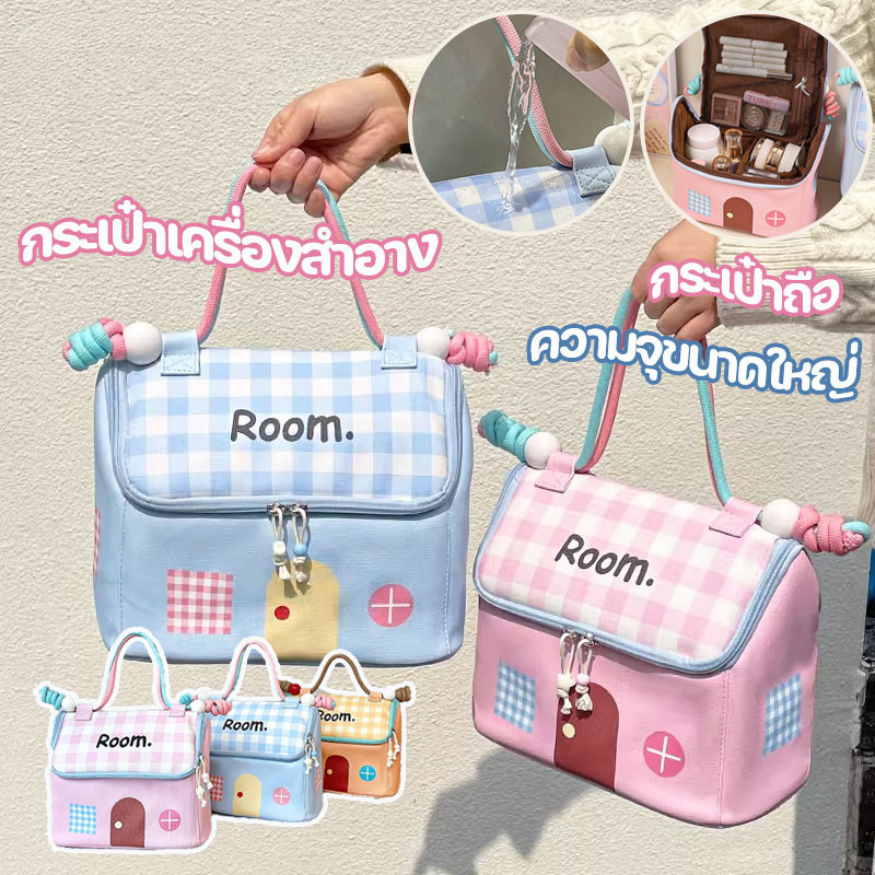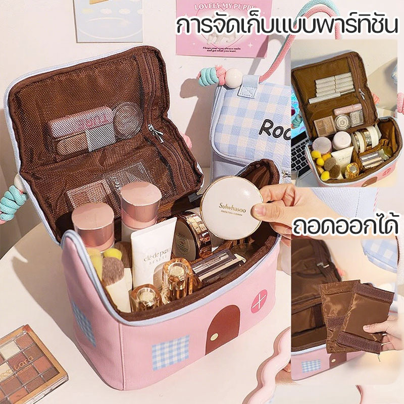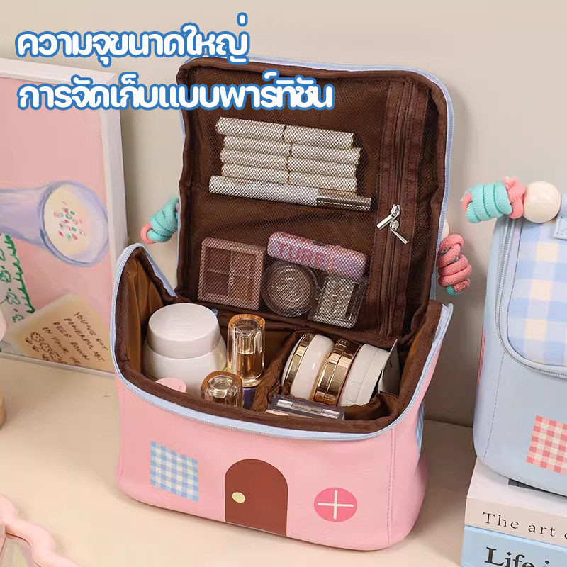 กระเป๋าเครื่องสําอาง ความจุขนาดใหญ่ บบพกพา จุของได้เยอะ การจัดเก็บพาร์ทิชัน น่ารัก