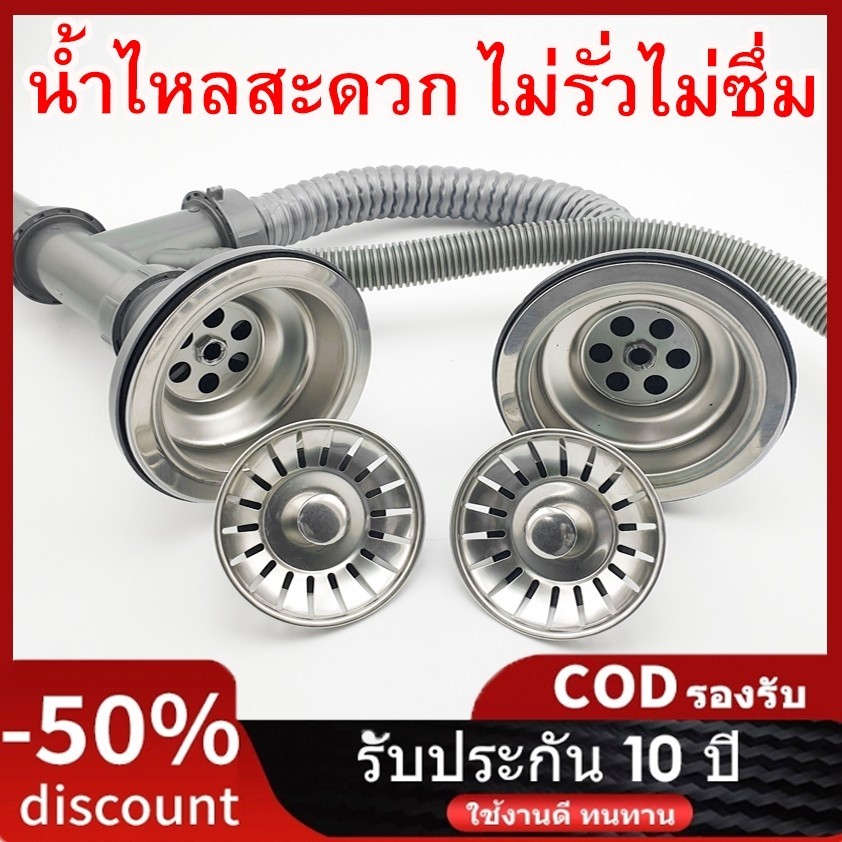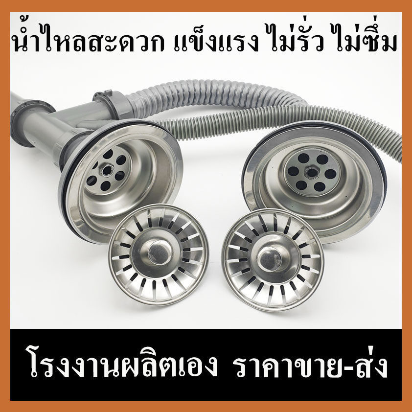 ชุดสะดืออ่างล้างจาน ครบชุดพร้อมติดตั้ง ท่อน้ําทิ้งอ่างล้างจาน สแตนเลสครบชุด แบบ 1 หลุม แบบ2หลุม