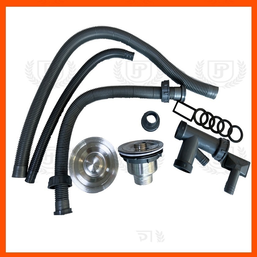 ชื่อสินค้า ท่อน้ำทิ้ง ท่อน้ำทิ้งพร้อมสะดืออ่าง ท่อย่น ท่อน้ำล้น ท่อน้ำทิ้ง2หลุม พร้อมใช้สุดคุ้ม ใช้กับอ่างล้างจานขนาดมาตรฐานทั่วไป(พร้อมส่ง) Drainer Kit for Kitchen sink เซ็ตท่อน้ำทิ้ง ใช้กับซิงค์ล้างจาน 2 หลุม1หลุม รหัส: SA002 วัสดุ : -ตัวเกลียวเป็นพลาสต