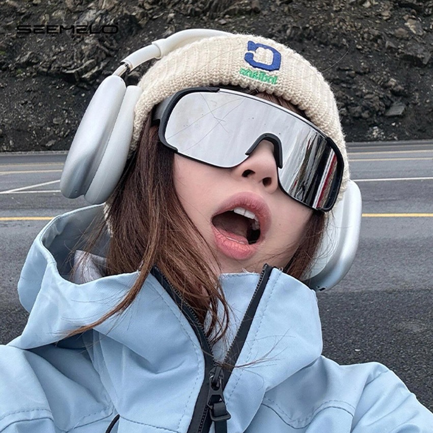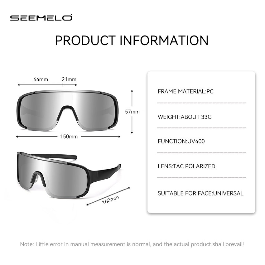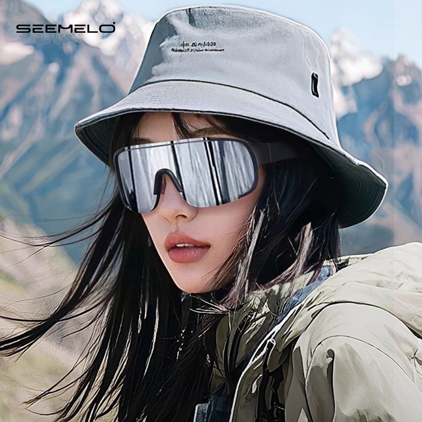 SEEMELO แว่นตากันแดดแบบโพลาไรซ์ สำหรับการเดินทางและท่องเที่ยว ขนาดใหญ่ ONE-PIECE สไตล์ unisex แว่นกันแสงแดด