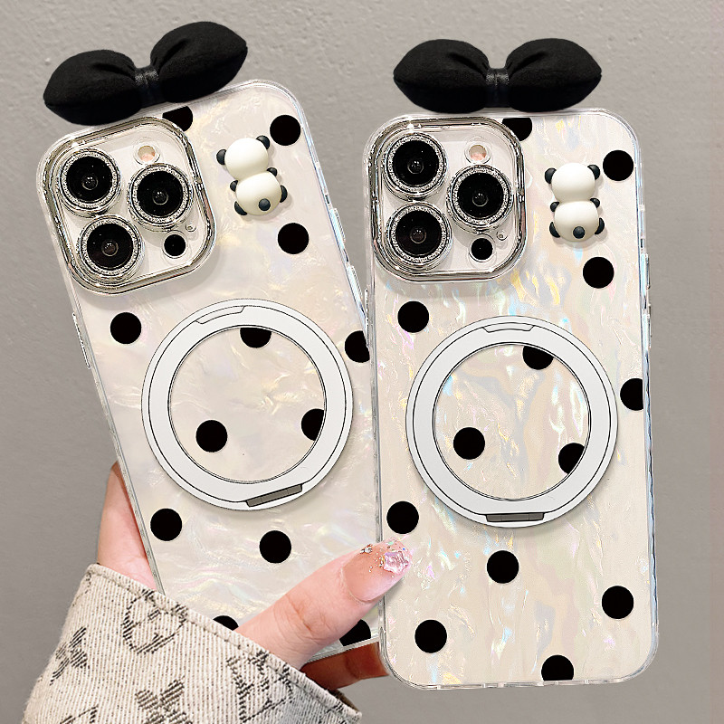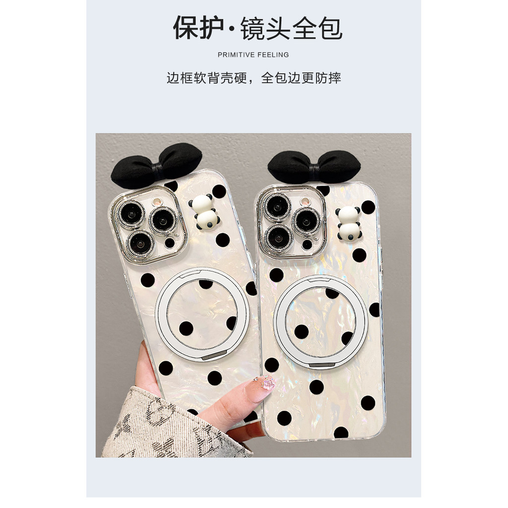 [875]?มาพร้อมกับการป้องกันเลนส์?เหมา OPPO Reno 14 13 11Pro 9 findX9 X9 Pro Pro เคสโทรศัพท์เหมา เหมา opporeno14 เคสโทรศัพท์ฤดูร้อนใหม่ของผู้หญิง reno13/12/11pro Polka Dot Doll Bow Bracket 10/9pro + รูปแบบเชลล์พร้อมฟิล์ม