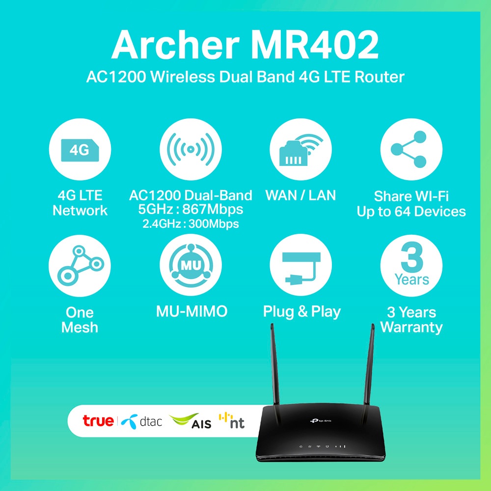 TP-Link Archer MR402 เราเตอร์ใส่ซิม AC1200 Wireless Dual Band 4G LTE Router รับประกัน 3 ปี