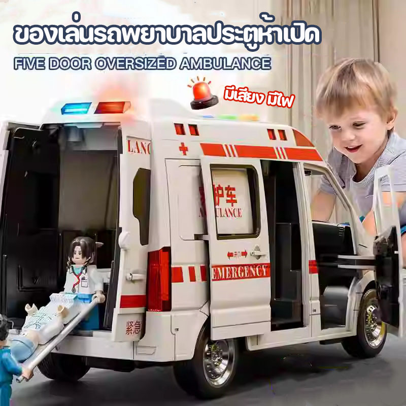 รถพยาบาลของเล่น รถดับเพลิง วิ่งได้ มีเสียง มีไฟ ประตูเปิดได้ 5 ของเล่นเด็ก ของขวัญสําหรับเด็ก