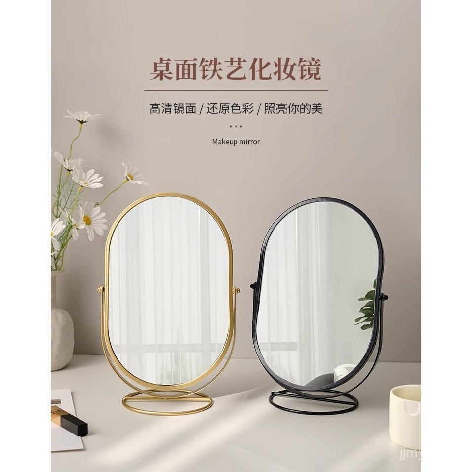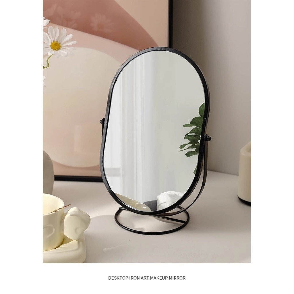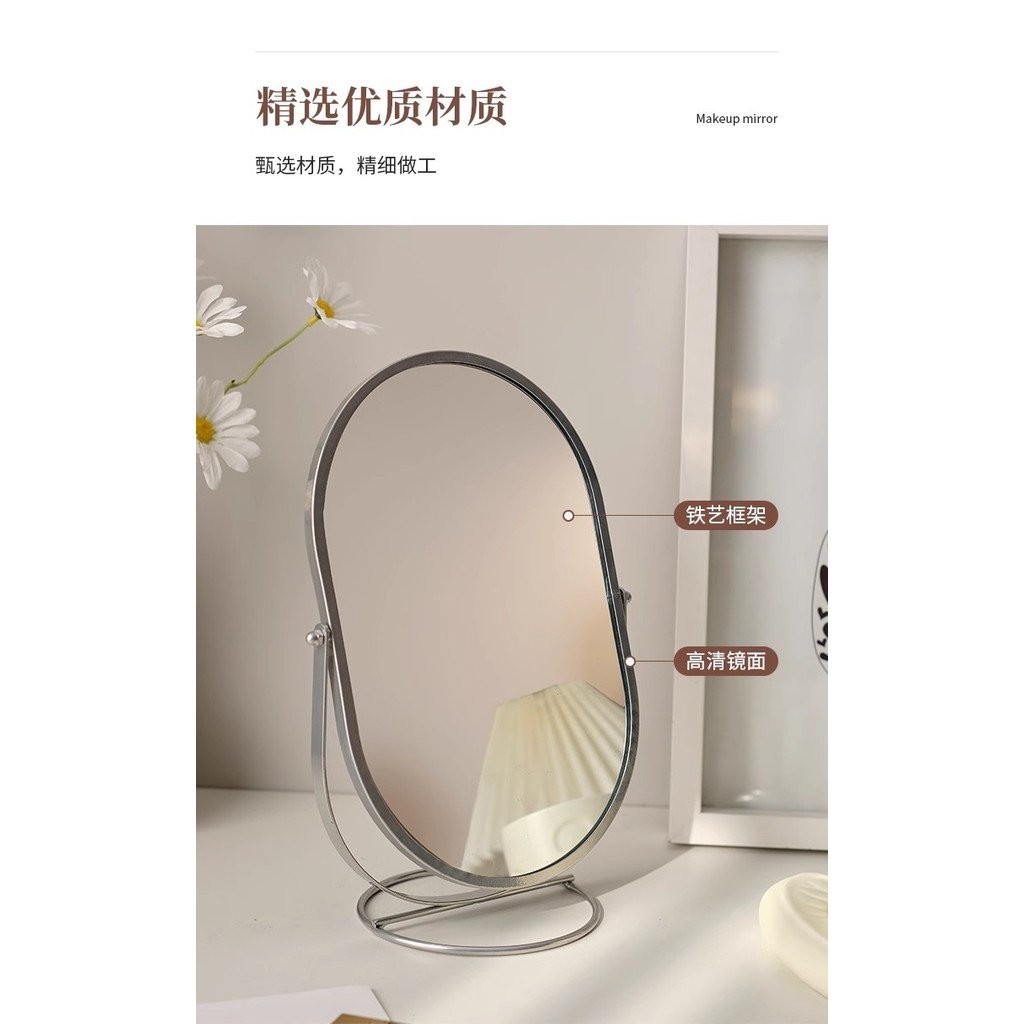 กระจกแต่งหน้าแบบตั้งโต๊ะ กระจกแต่งหน้าในห้องนอน กระจกทรงวงรีหมุนได้ สไตล์หอพัก กระจกแต่งตัว YPSS