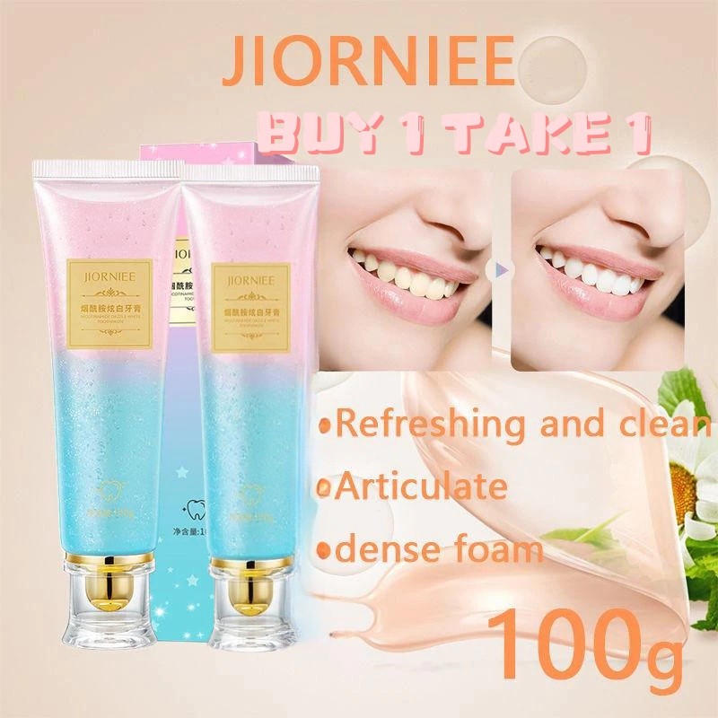 ซื้อ 1 แถม 1 Jiorniee Niacinamide ยาสีฟันฟอกฟันขาว ขจัดคราบในช่องปาก 100 กรัม จัดส่งด่วน