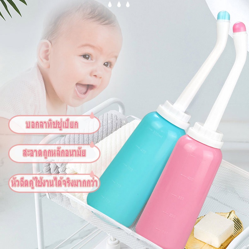 COD ที่ฉีดชำระแบบพกพา ที่ฉีดก้นพกพา 500ml หัวตรง หัวโค้ง ฝาป้องกันฝุ่น*2 พกพาสะดวก ถูกสุขอนามัย