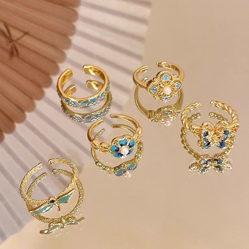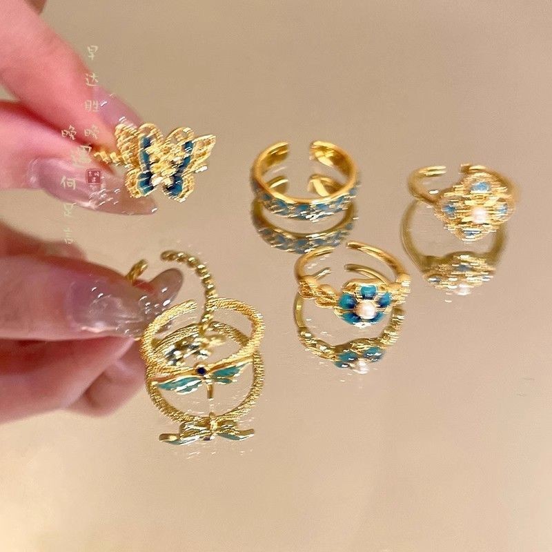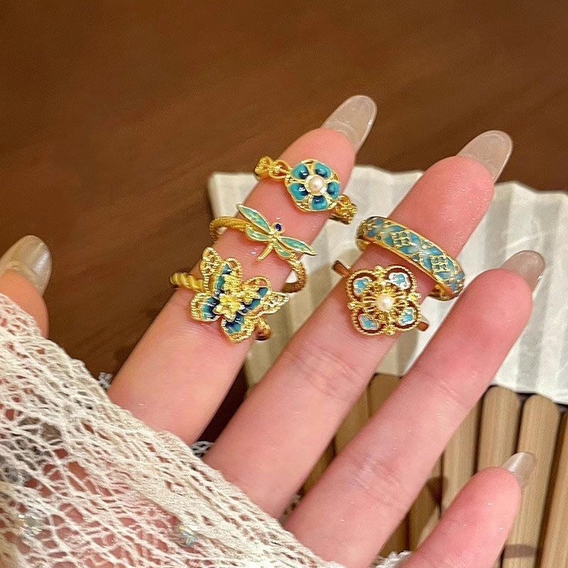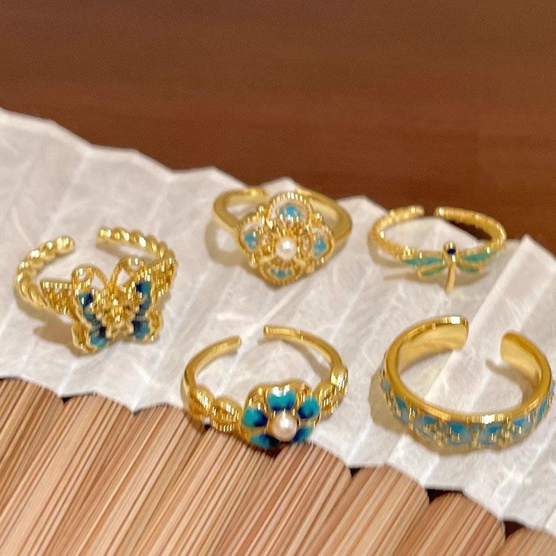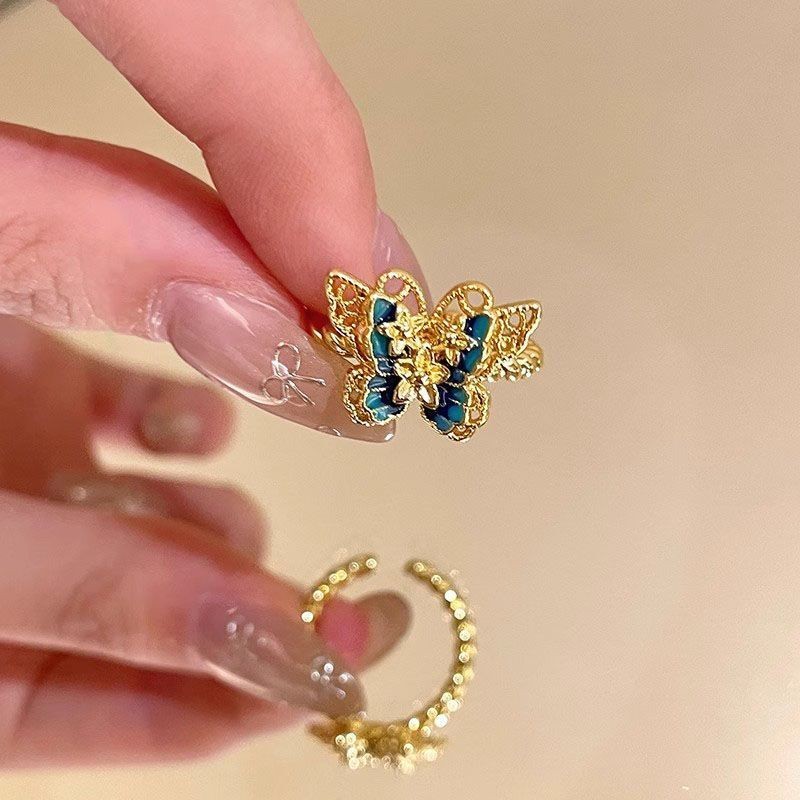 แหวนผีเสื้อกลวงเคลือบจีนใหม่การออกแบบเฉพาะอินหรูหราเบาแหวนนิ้วชี้สไตล์โบราณระดับไฮเอนด์