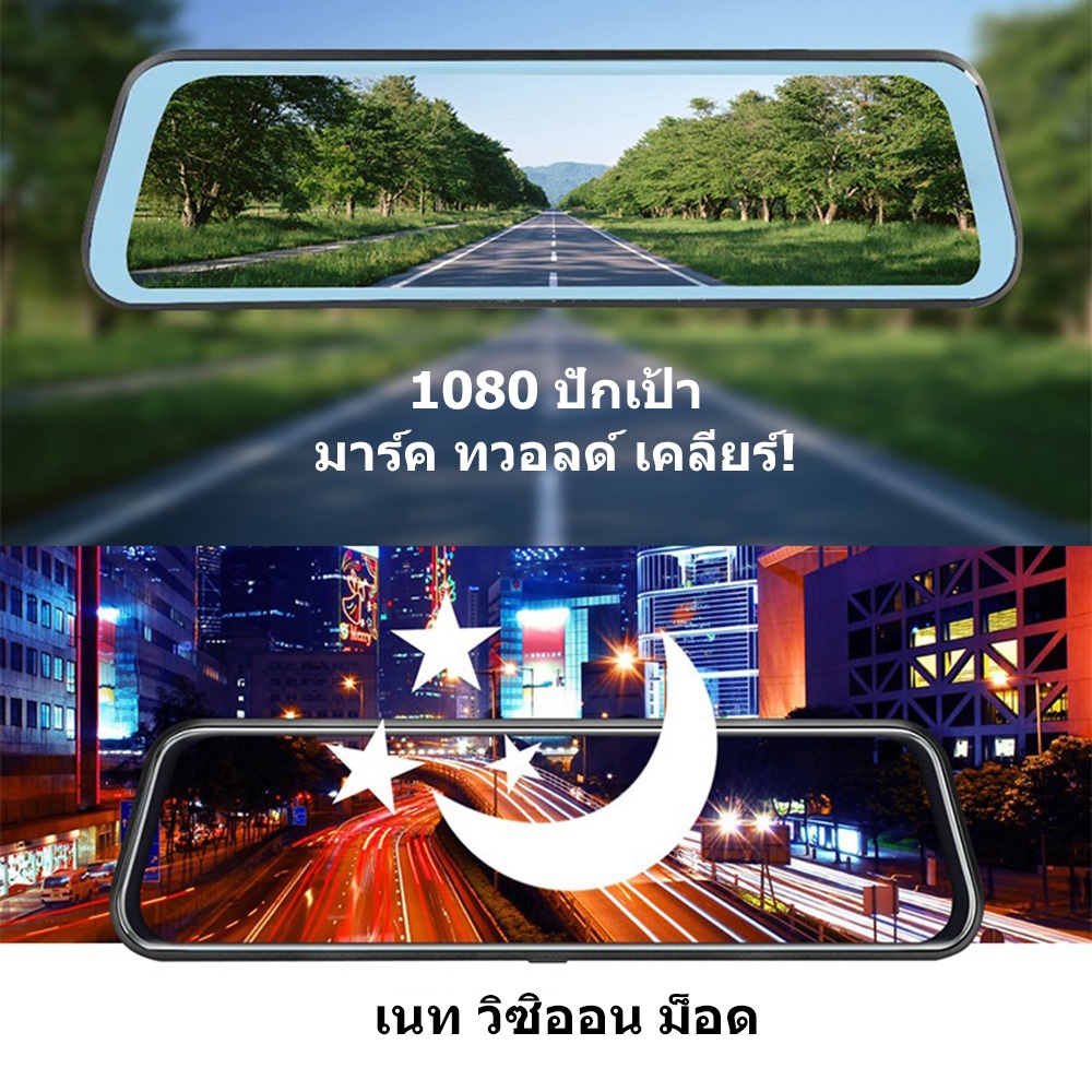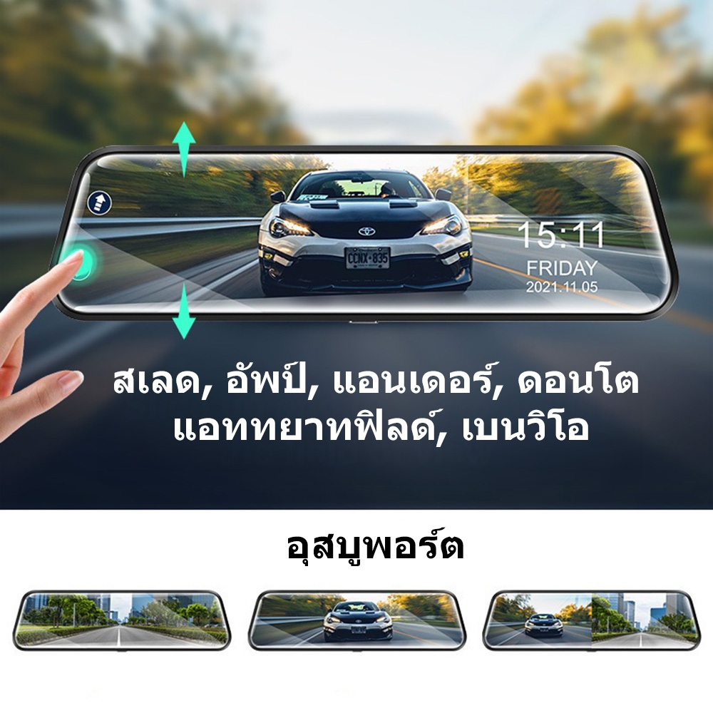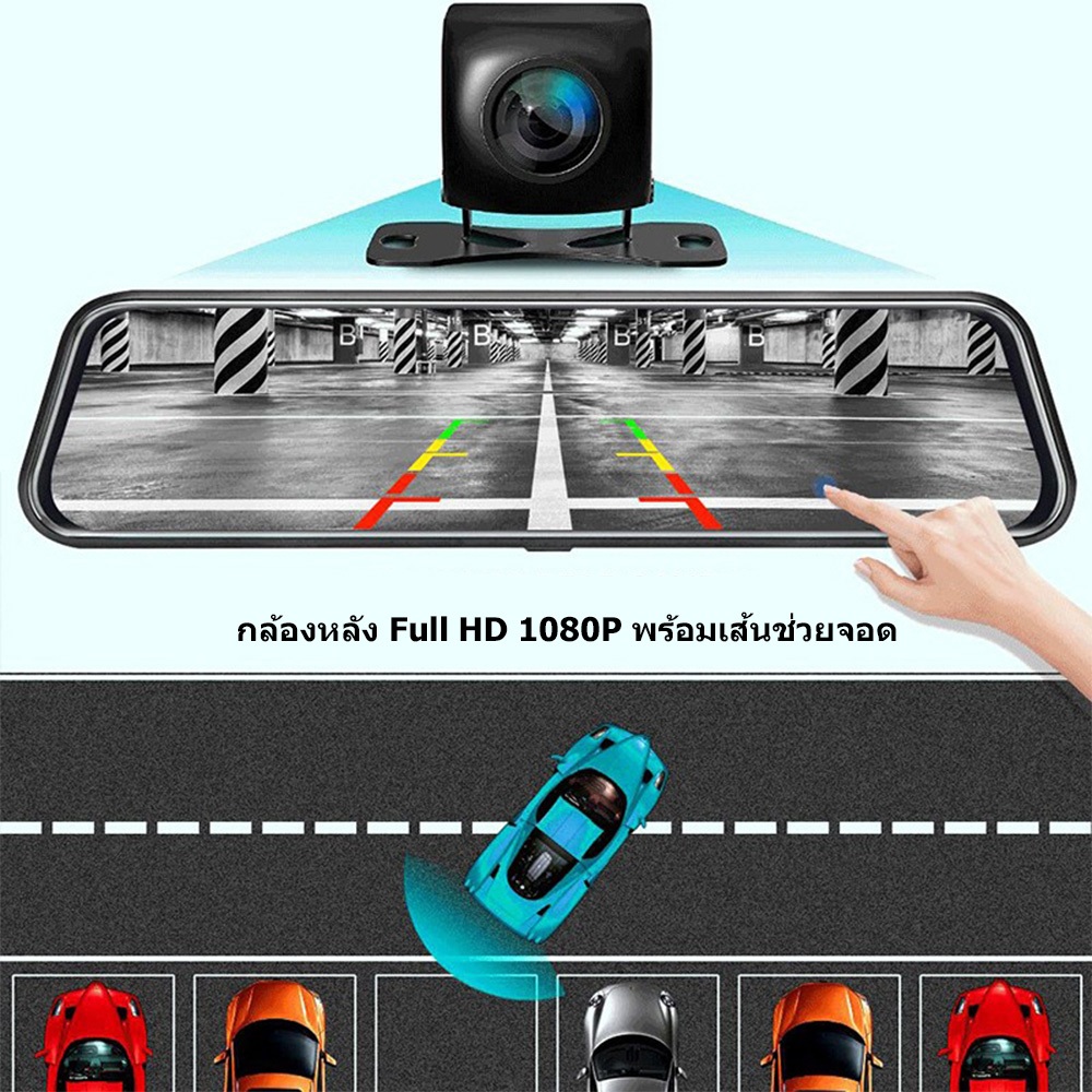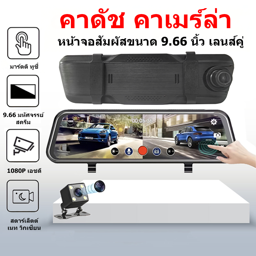 9.66 Dash Cam นิ้ว กล้องติดรถยนต์ ทัชสกรีน จอกระจก 4K HD 2กล้อง หน้า-หลัง กลางคืนสว่างที่สุด มีระบบปฏิบัติการภาษาไทย