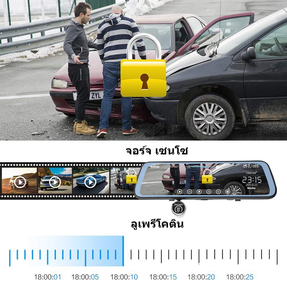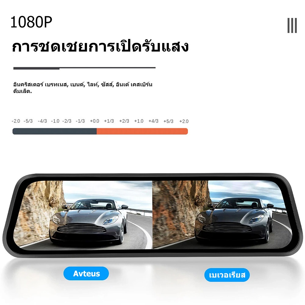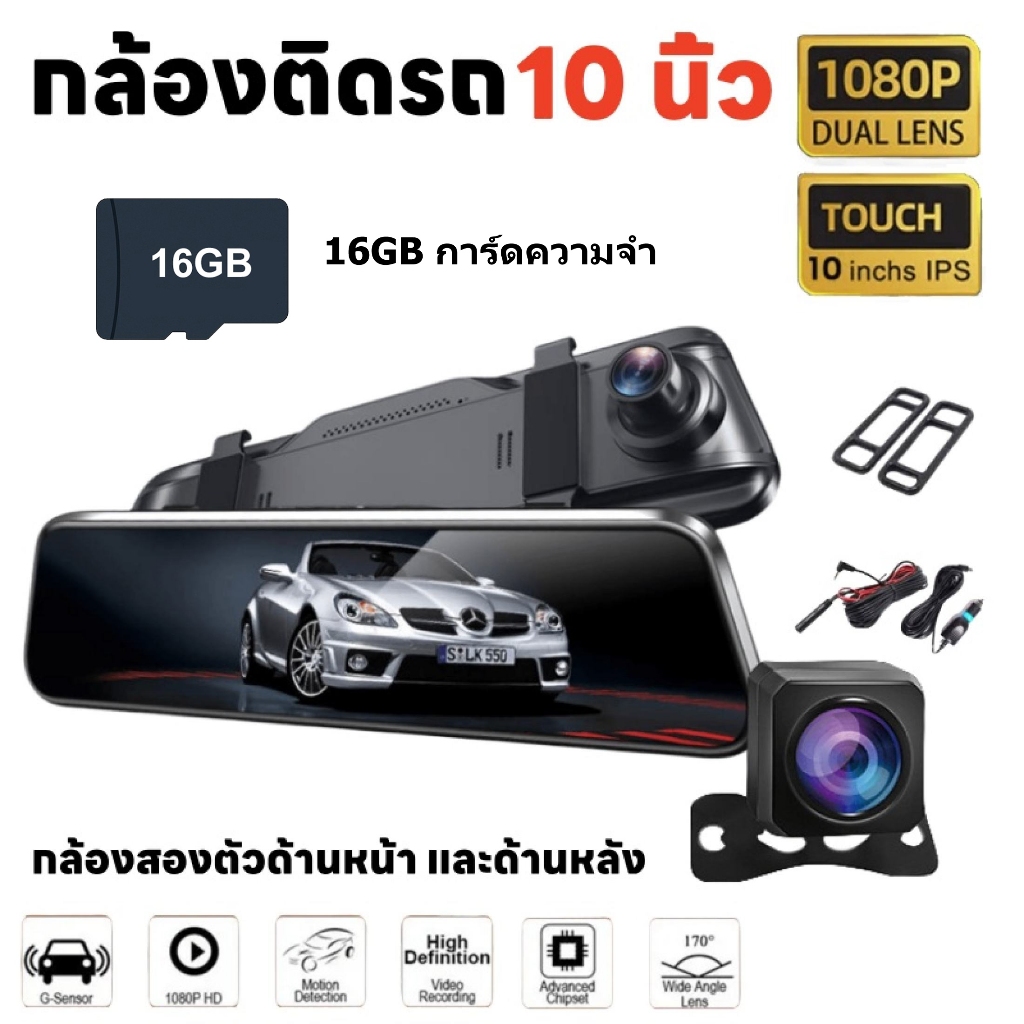 9.66 Dash Cam นิ้ว กล้องติดรถยนต์ ทัชสกรีน จอกระจก 4K HD 2กล้อง หน้า-หลัง กลางคืนสว่างที่สุด มีระบบปฏิบัติการภาษาไทย