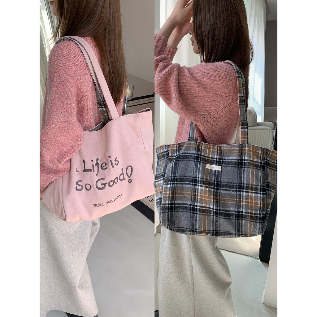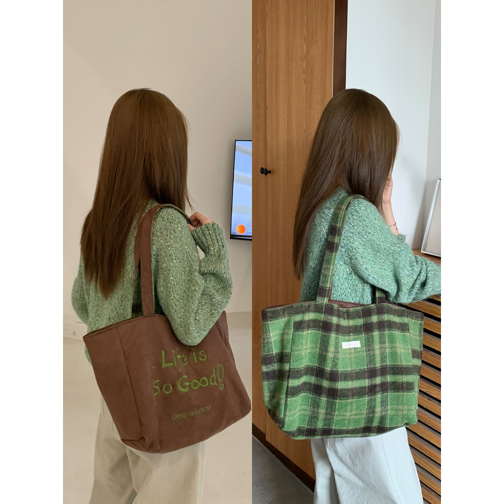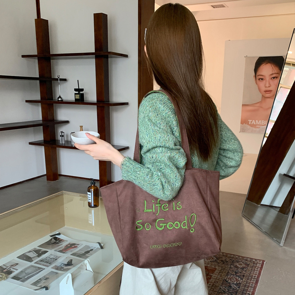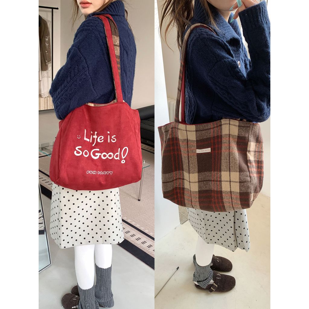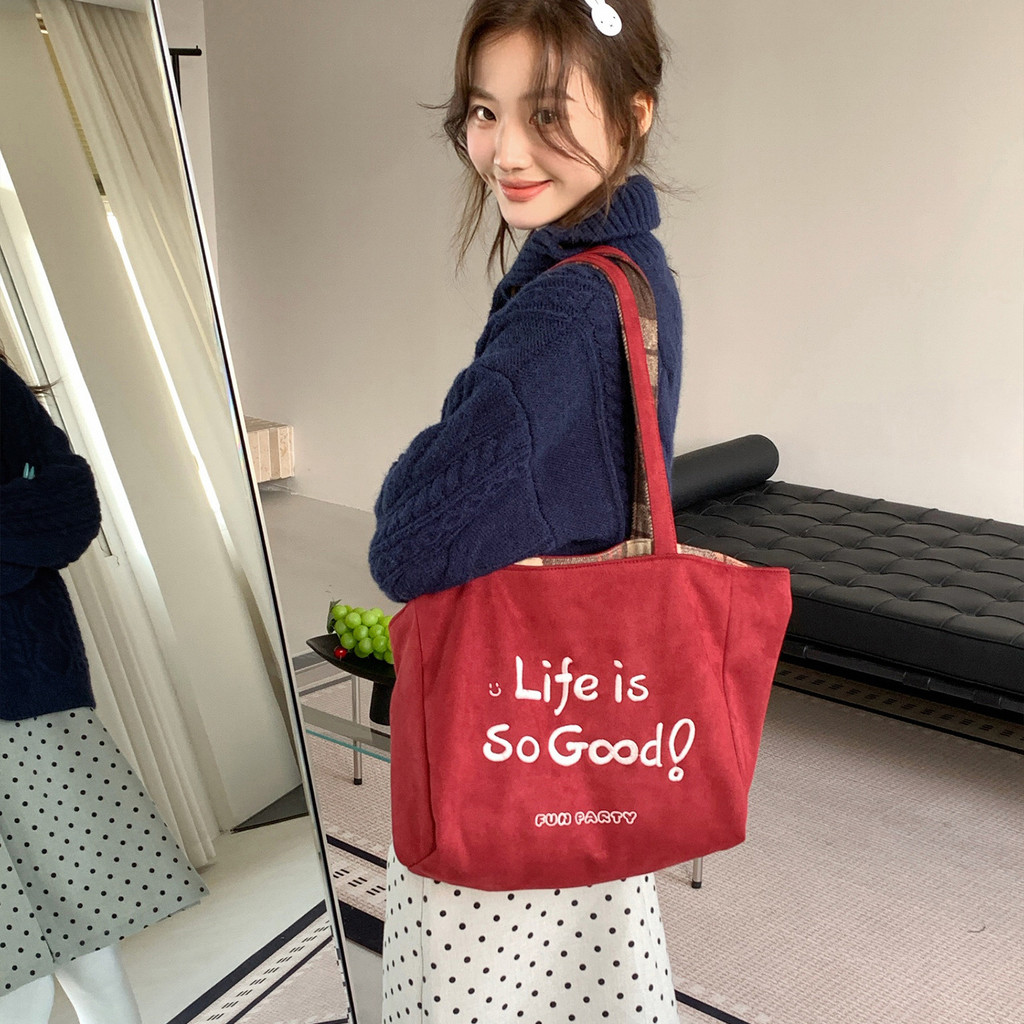 กระเป๋าหนัง suede สไตล์เรโทรสีน้ำตาล ปักลายอักษร สำหรับผู้หญิง มีความจุมาก