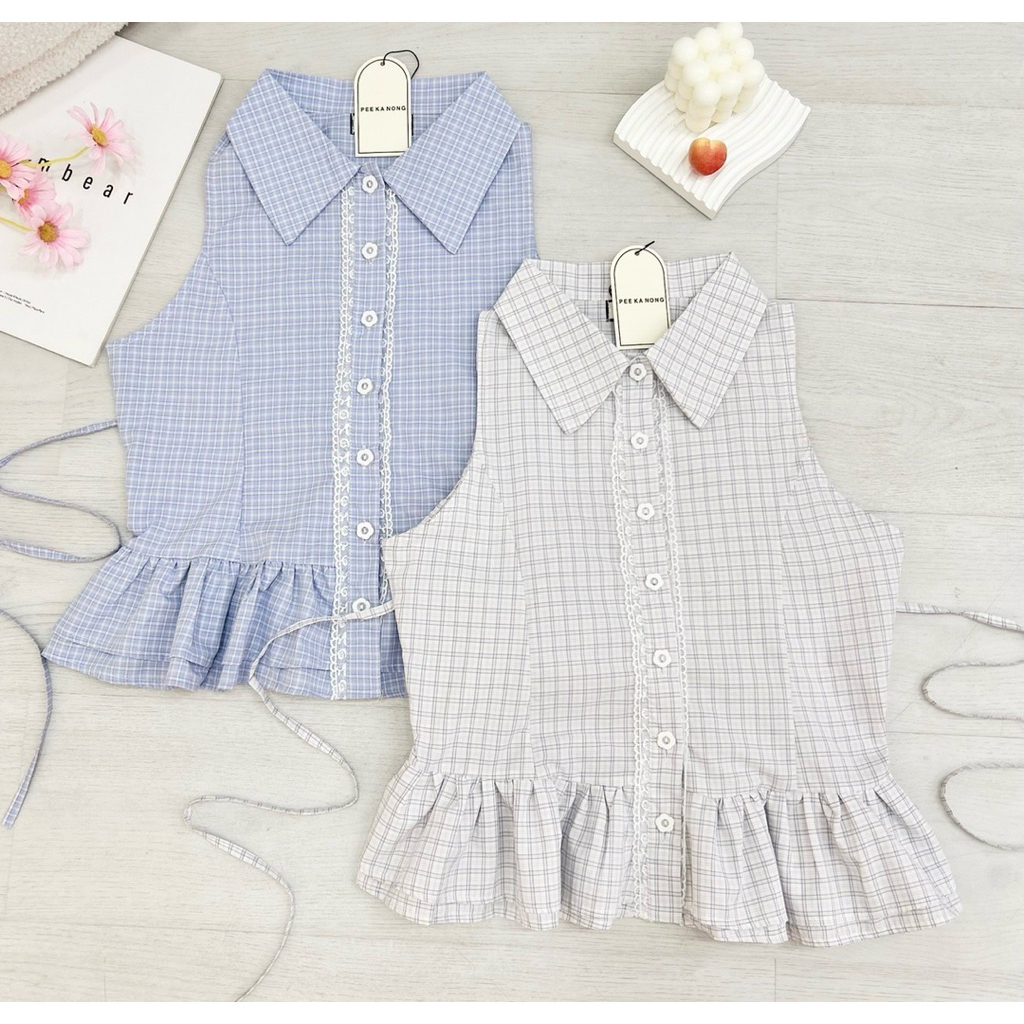 NN699 เสื้อคอปกแขนกุดลายสก็อต Peekanong?