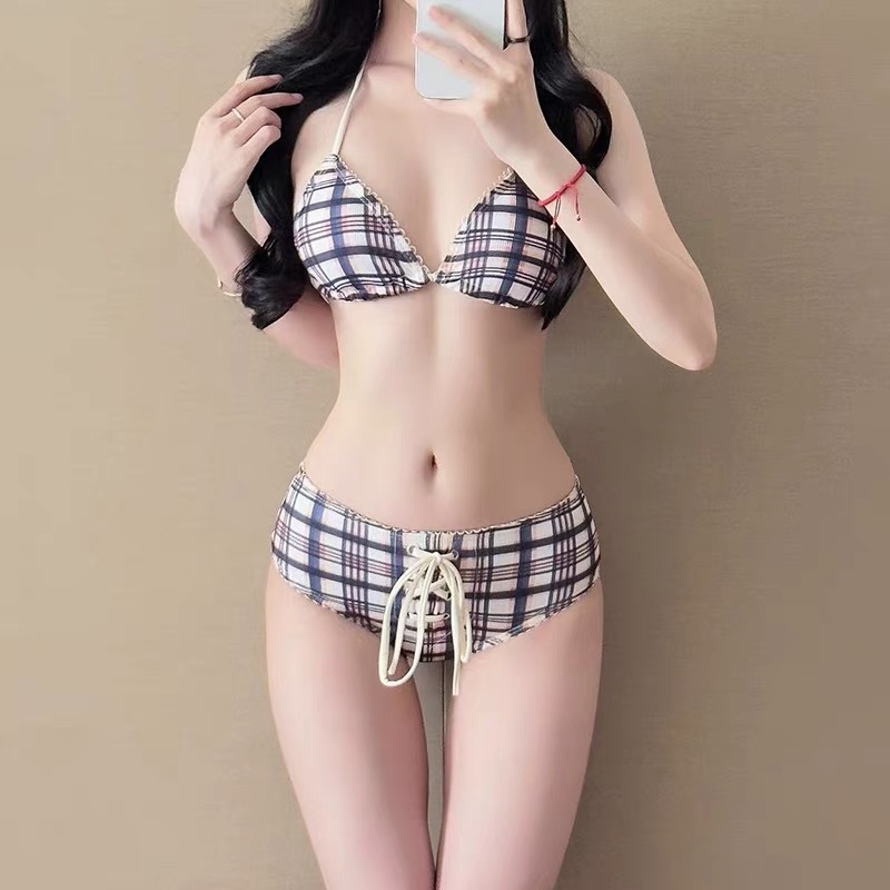 ส่งไวจากไทย bikini bra ชุดว่ายน้ำ บิกินี่ ทูพีช ลายสก็อต ลายสก็อต#0984