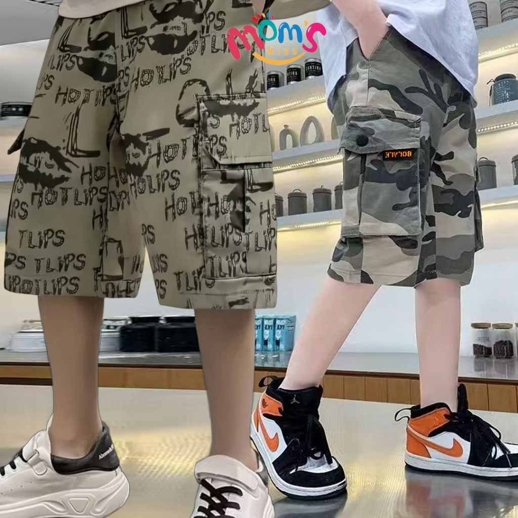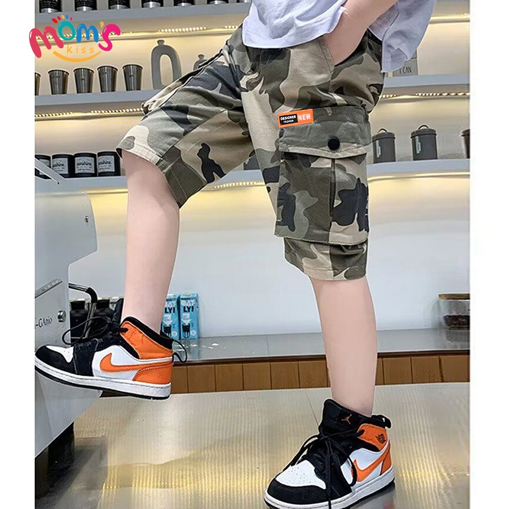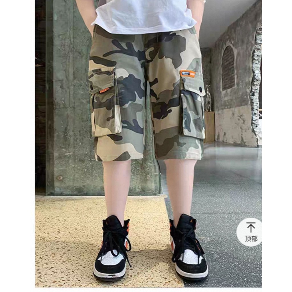 【จัดส่งจากประเทศไทย】กางเกงขาสั้นลายพรางสำหรับเด็กผู้ชาย ดีไซน์ลายพรางสไตล์ทันสมัย กางเกงขาสั้น 7 ส่วนสไตล์คาร์โก้สำหรับเด็ก