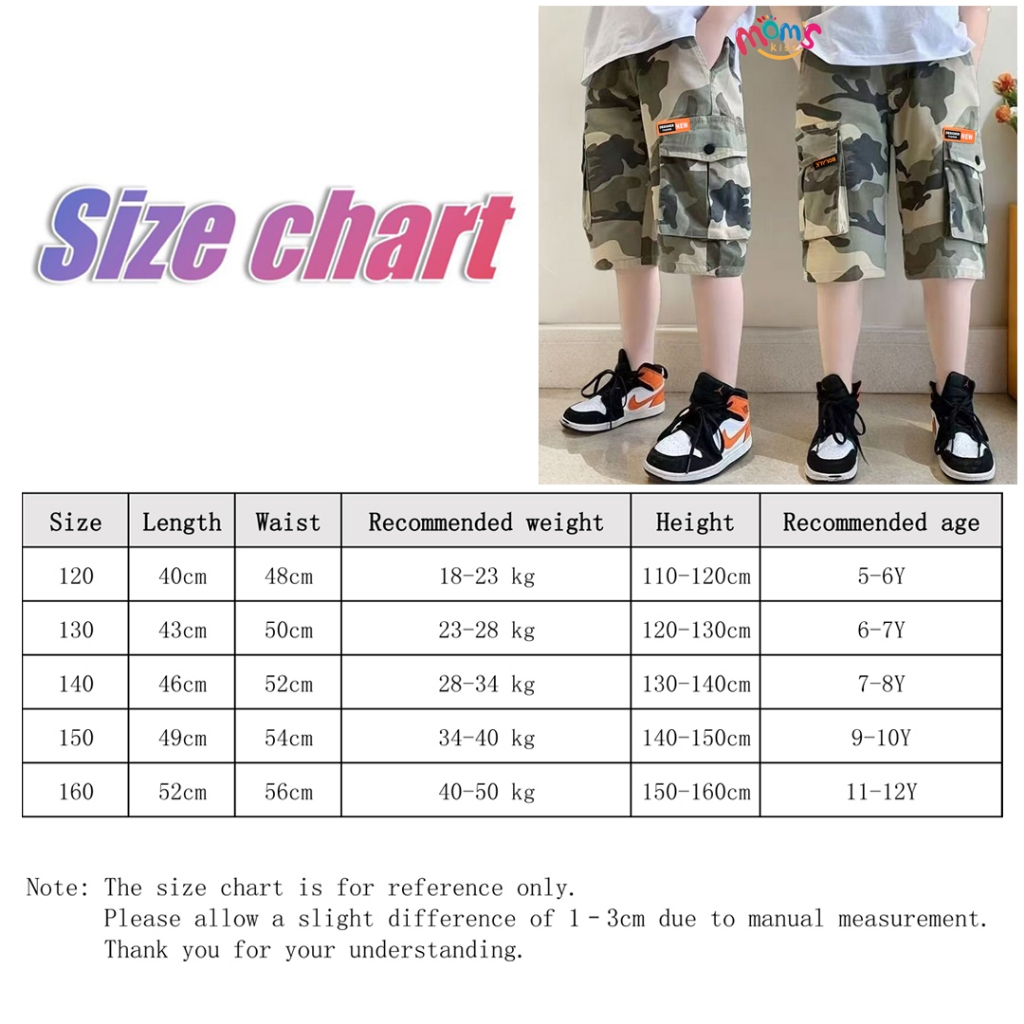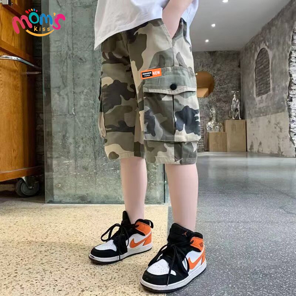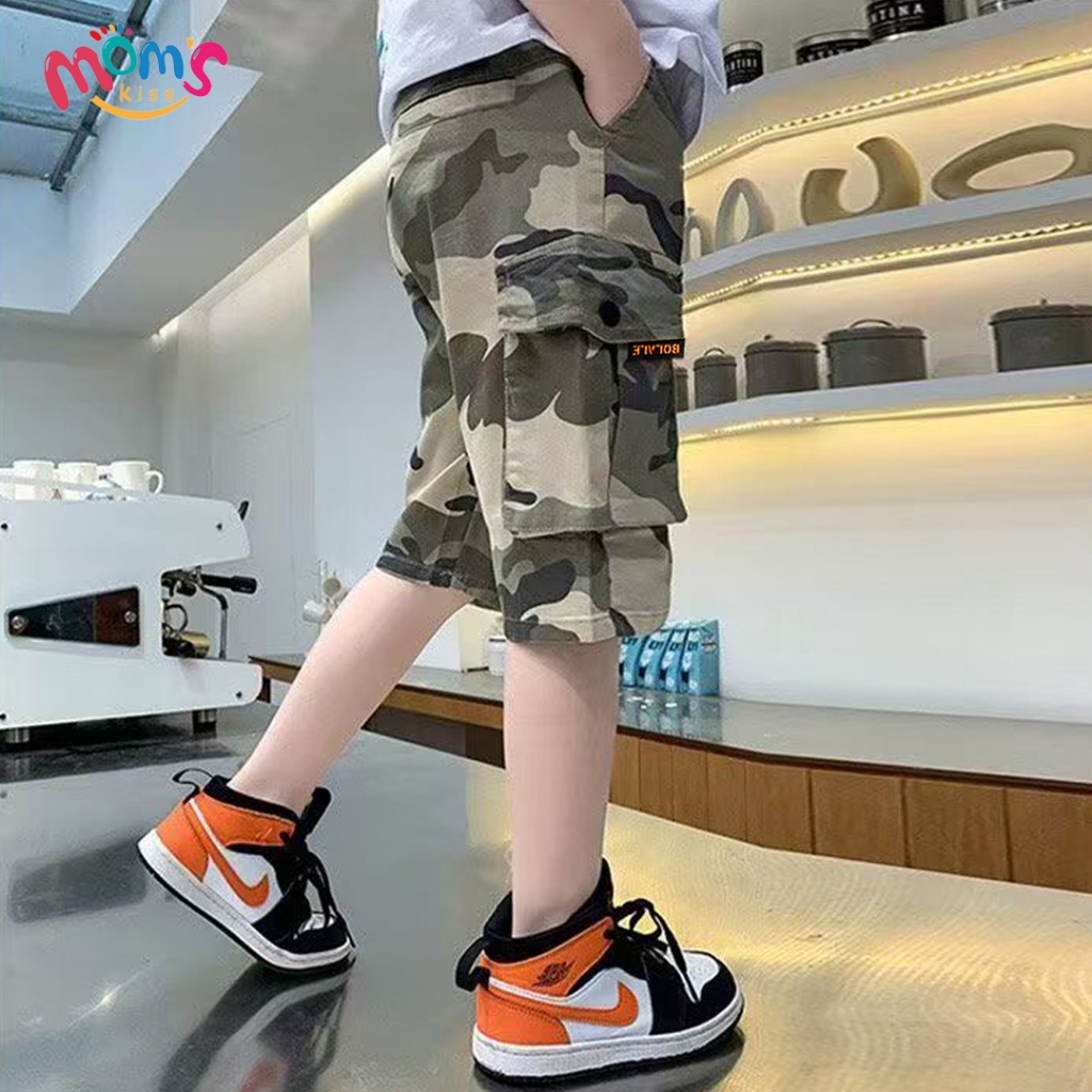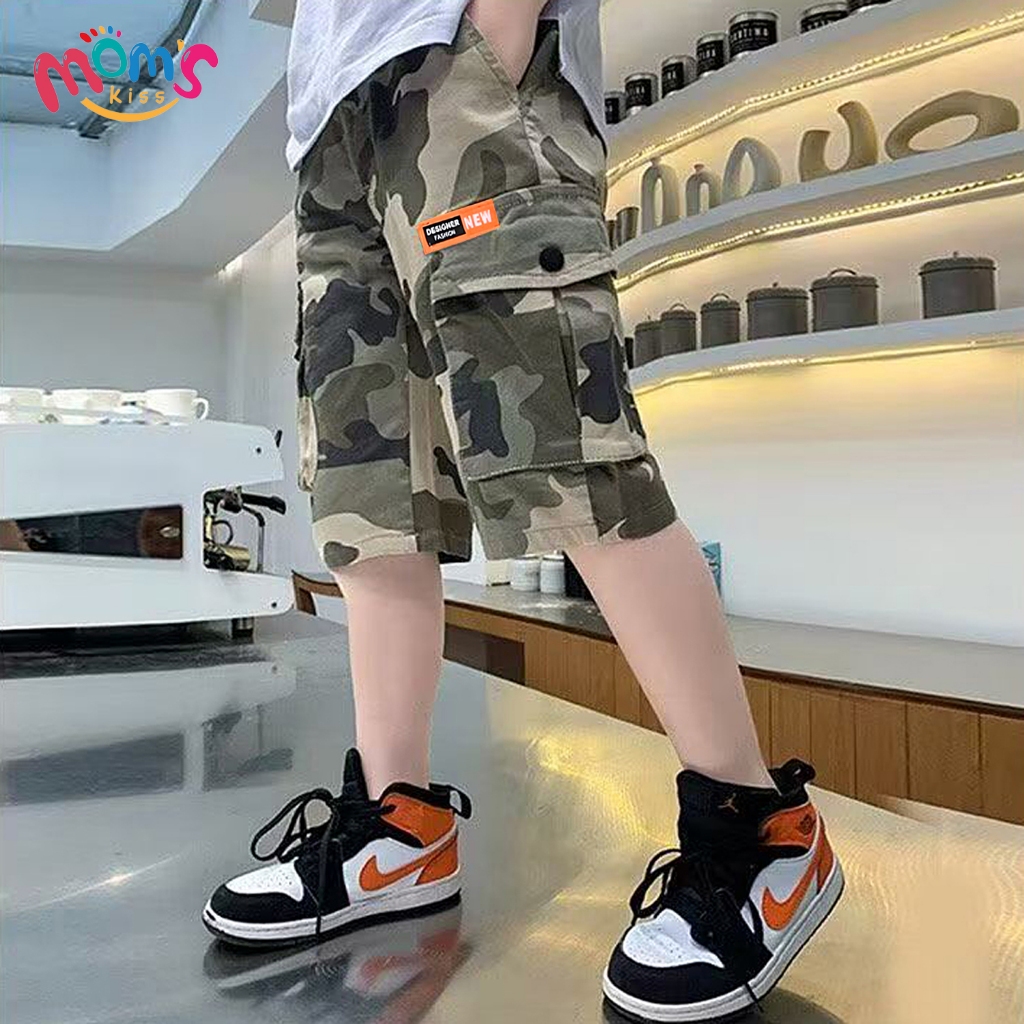 【จัดส่งจากประเทศไทย】กางเกงขาสั้นลายพรางสำหรับเด็กผู้ชาย ดีไซน์ลายพรางสไตล์ทันสมัย กางเกงขาสั้น 7 ส่วนสไตล์คาร์โก้สำหรับเด็ก