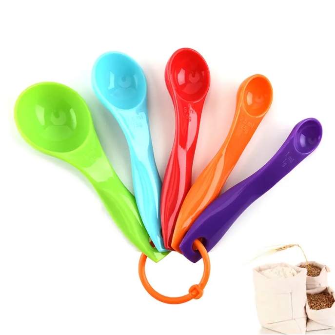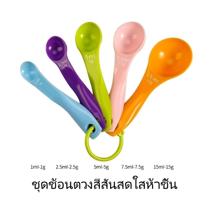 ชุดเครื่องมือช้อนตวงอาหารเรซิ่นสุ่มสี 5 ชิ้น