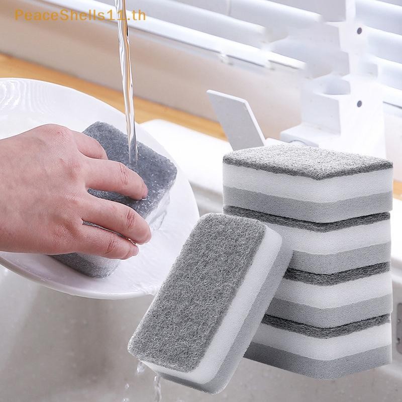 PeaceShells 10 ชิ้นฟองน้ําทําความสะอาดสองด้านสําหรับจานอุปกรณ์ครัว TH