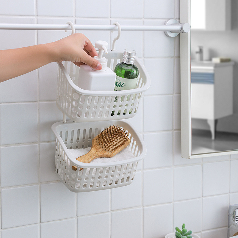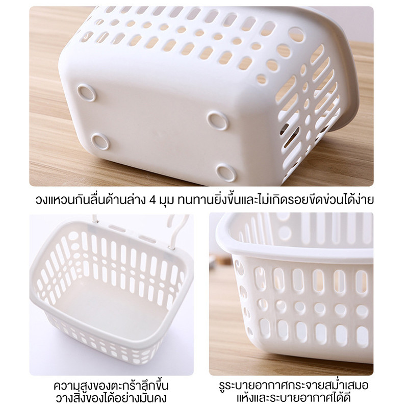 แบบแขวนผนังตะกร้าเก็บของ ตะกร้าพลาสติก ตะกร้าแขวน สามารถซ้อนกันได้ ใส่ขนม ใส่เครื่องเขียน ที่เก็บเครื่องสำอาง