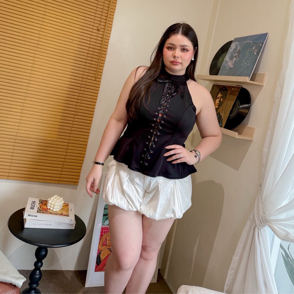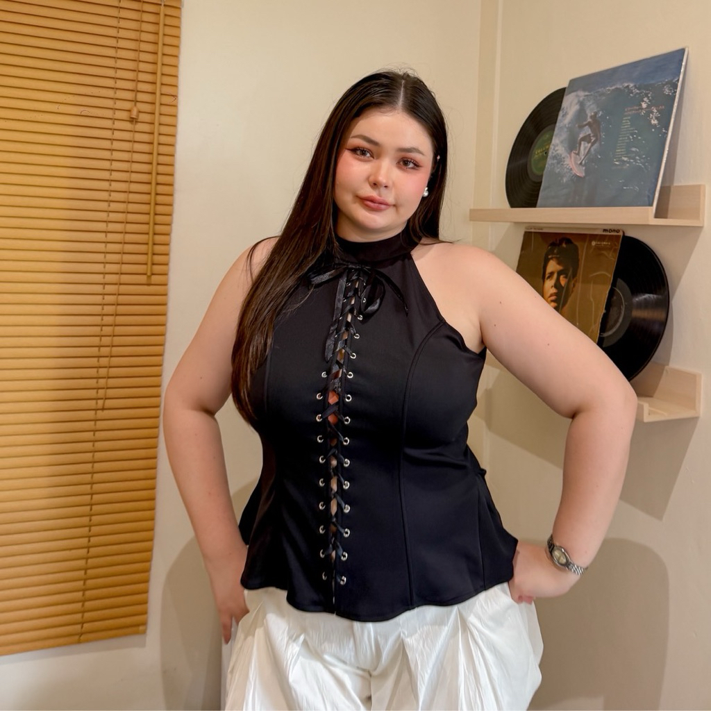 Lady M | Tie Mood Top เสื้อดีเทลผูกเชือกไขว้หน้า ดีไซน์สุดเท่ สีดำ สาวอวบใส่แล้วสวย พรางหุ่น เที่ยว ปาร์ตี้ Everydaylook
