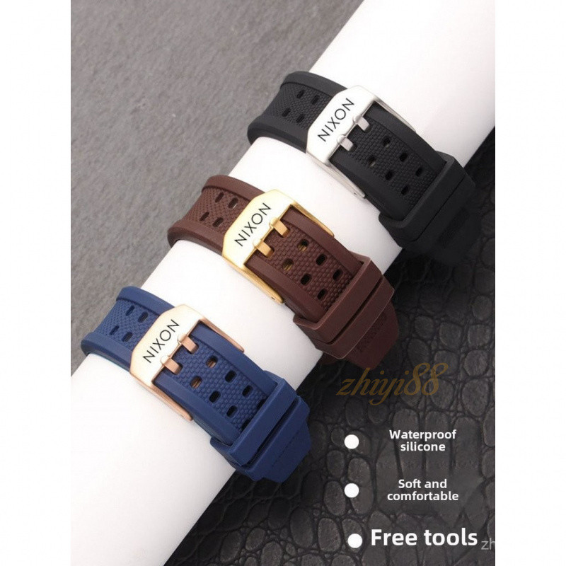 สายนาฬิกาซิลิโคนนุ่มกันน้ำขนาด 20-24 มม. สำหรับ Nixon – สายเปลี่ยนแบบปลายแบนและตัวล็อคสองขาสำหรับทุกเพศ