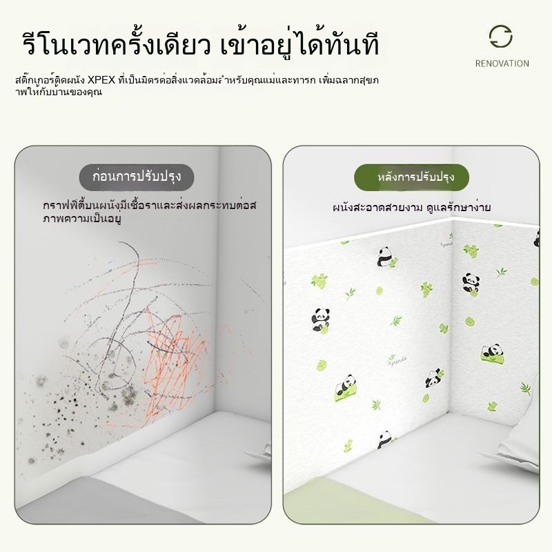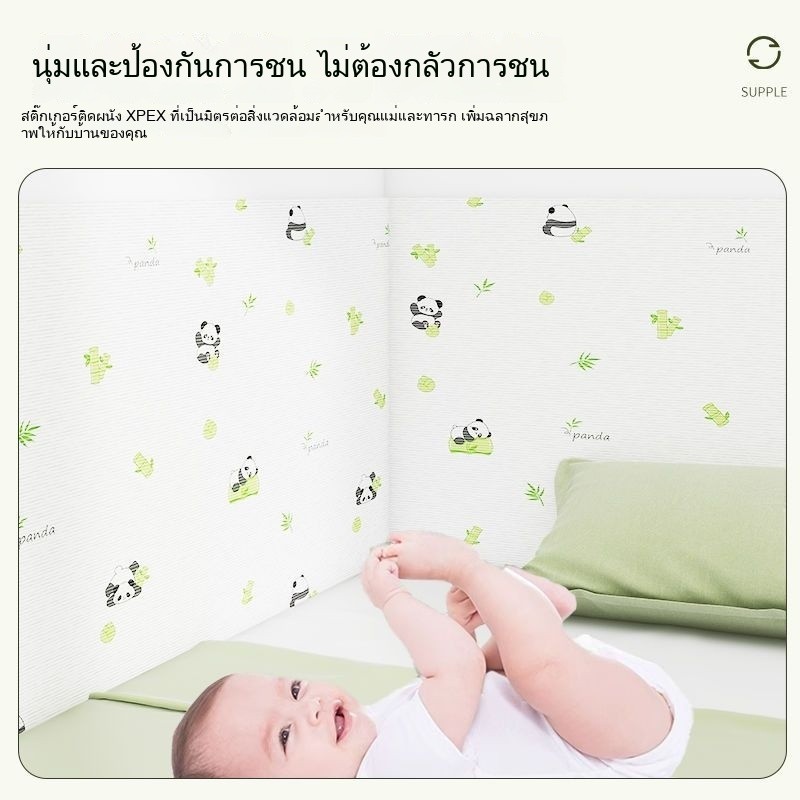 ขอบผนังกันกระแทกหนาสำหรับห้องเด็กแบบติดตั้งเอง แผงผนังข้างเตียงสำหรับห้องนอน สติ๊กเกอร์ติดผนังกันความร้อน