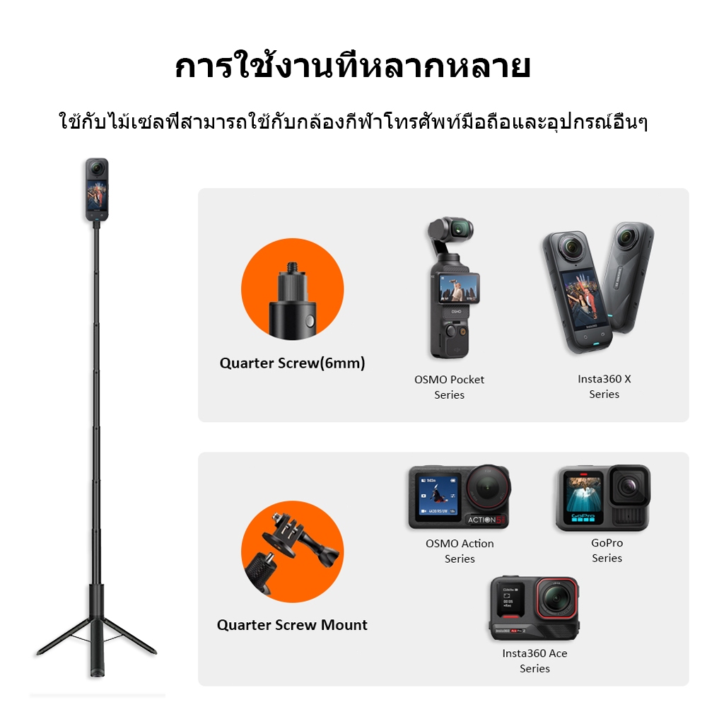 Insta360 X5 / X4 Air / X4 / X3 2-in-1 Selfie Stick Tripod ไม้เซลฟี่ที่มองไม่เห็น พร้อมขาตั้งกล้อง Combo สําหรับ Dji Pocket 3 / Dji Action 5 Pro / Gopro