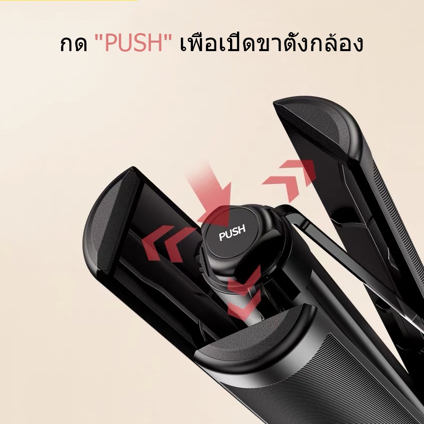 ☑️ไม้เซลฟี่แบบยืดไสลด์และขาตั้งกล้องแบบ 2-in-one กดปุ่มด้านล่างเพื่อเปิดขาตั้งกล้อง