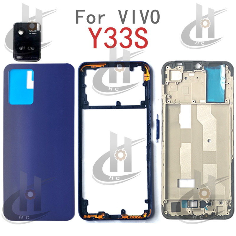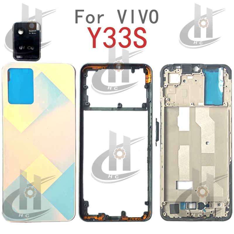 สําหรับ VIVO Y33S Y33T 4G แบตเตอรี่ฝาหลังกรอบกลาง + ปุ่ม + กรอบด้านหน้า LCD + เลนส์กรอบกล้อง