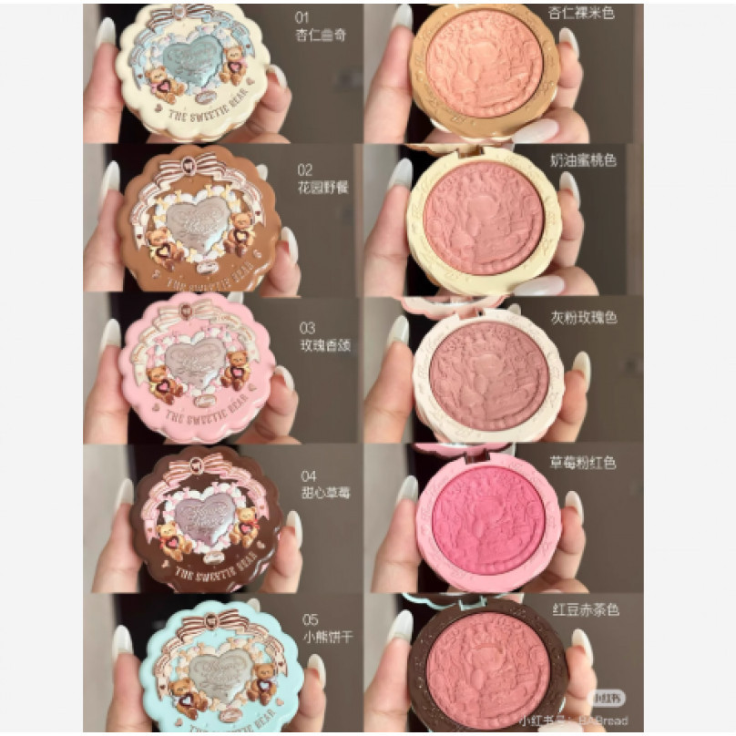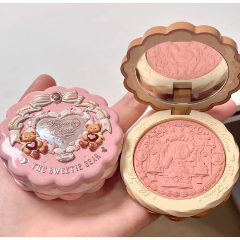 FLOWER KNOWS Sweetheart Bear Series Blush Natural ใช้งานได้หลากหลายพร้อมประกายแวววาวที่ทาง่าย