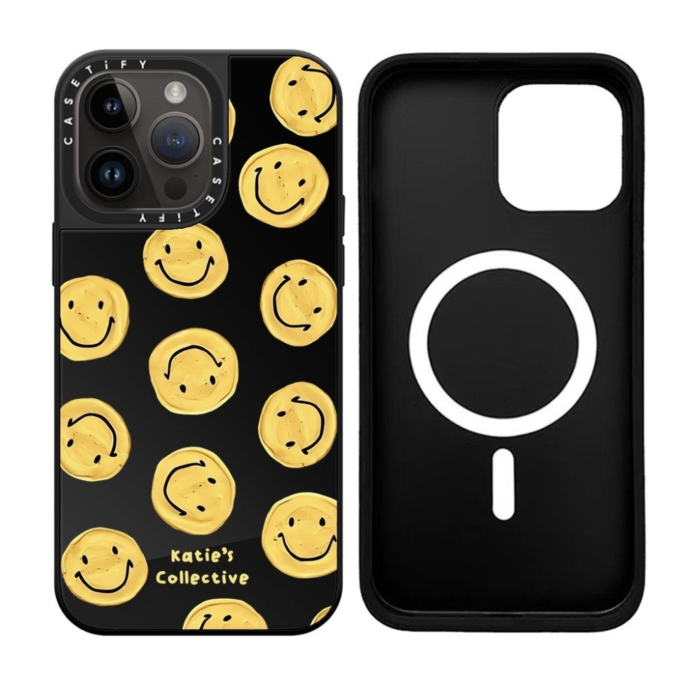 เคสโทรศัพท์กระจกหน้ายิ้มแม่เหล็กสําหรับ ไอโฟน 17 มือโปร สูงสุด 16 15 14 13 12 11 ปลอกกันกระแทก