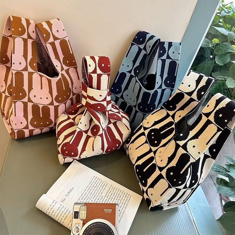 KVK-shop: พร้อมส่งไทย:กระเป๋าถือลําลอง ผ้าถัก ลายสก๊อต แฮนด์เมด ZB1