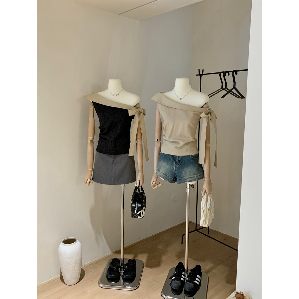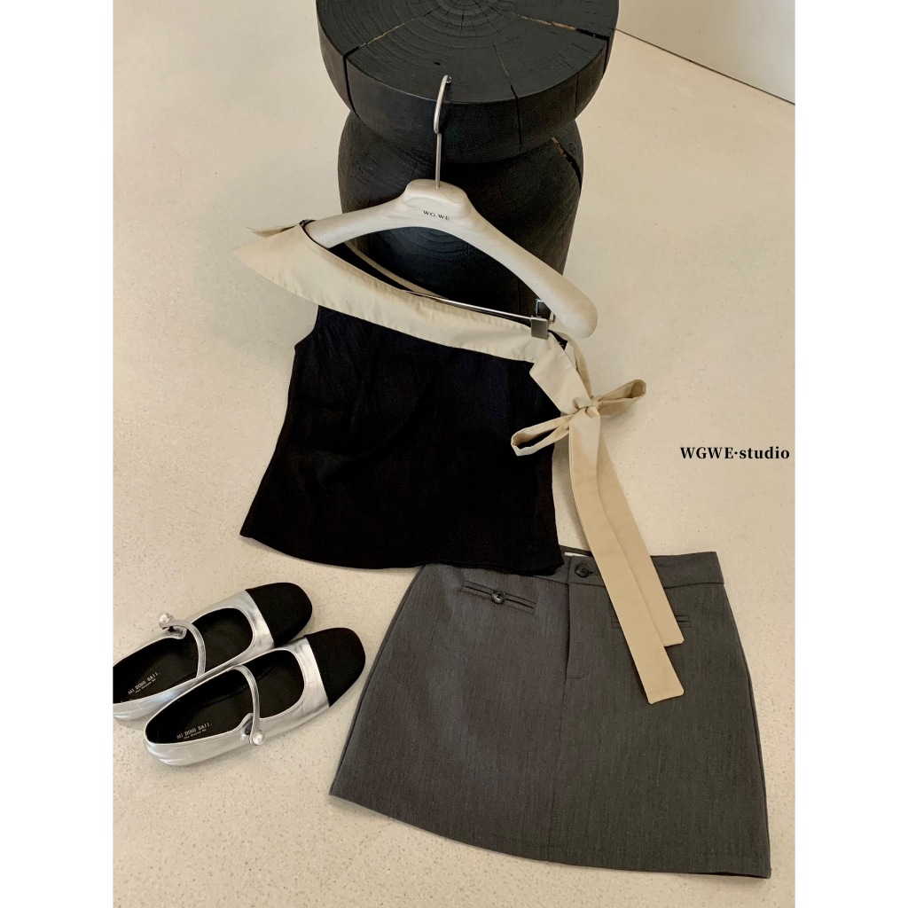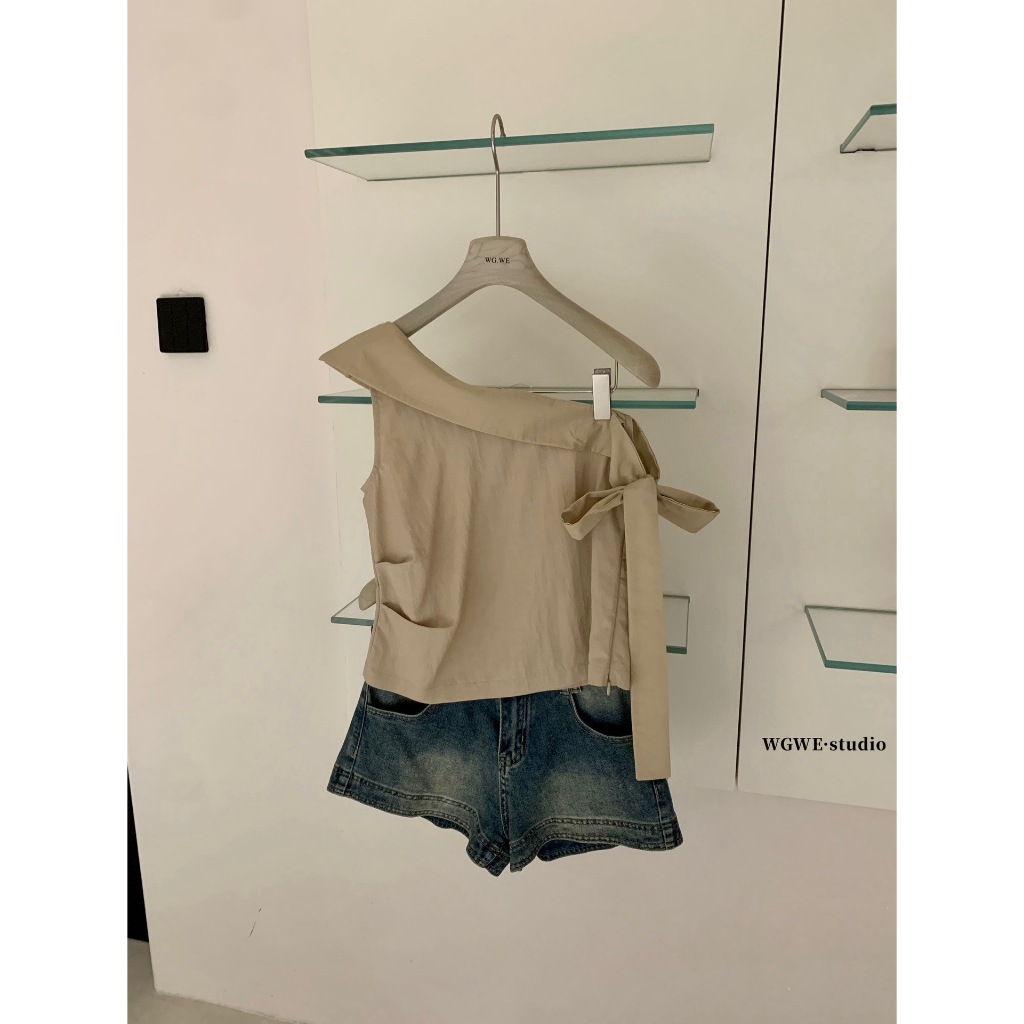 ?? ?? W5963 เสื้อปาดไหล่ แต่งผ้าช่วงไหล่ และด้านข้าง งานสวยเก๋มากๆค่า ทรงน่ารัก แฟชั่นเกาหลี TAG WG.WE ??