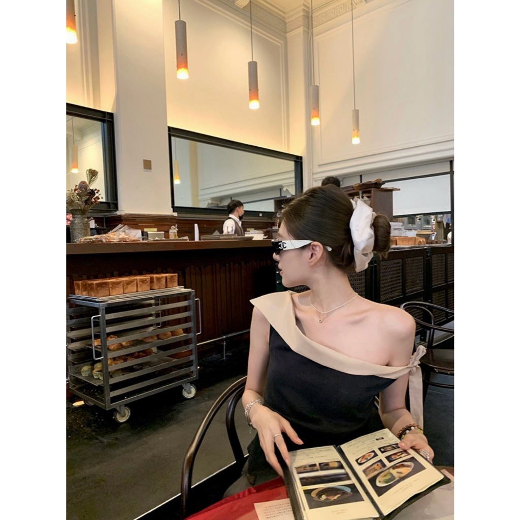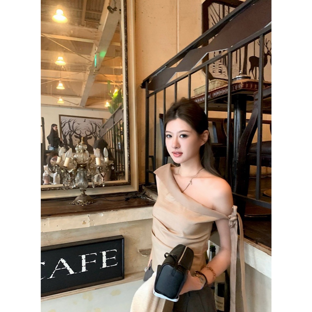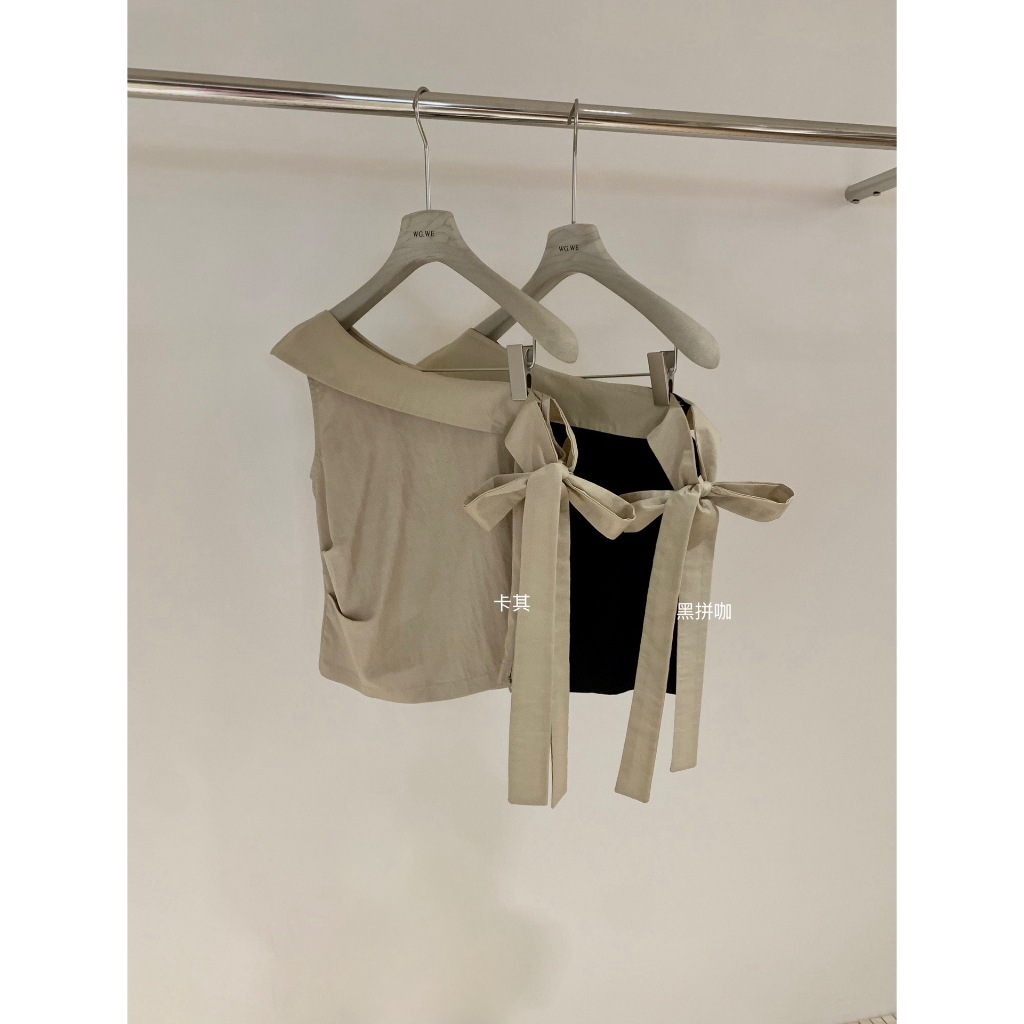 ?? ?? W5963 เสื้อปาดไหล่ แต่งผ้าช่วงไหล่ และด้านข้าง งานสวยเก๋มากๆค่า ทรงน่ารัก แฟชั่นเกาหลี TAG WG.WE ??