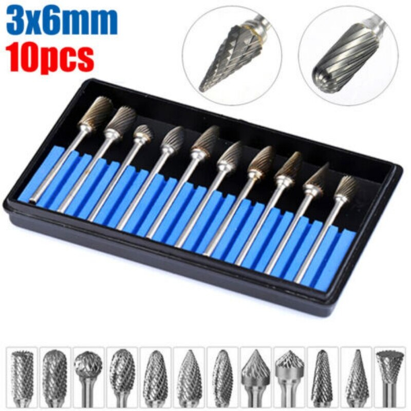 ชุดดอกเจียรเพชรตะไบแข็งคาร์ไบด์ทังสเตน 10 ชิ้น ดอกคาร์ไบด์ ดอกกัด ดอกเจียรเหล็ก ดอกเจียรดอกกัดแกน 10ชิ้น ขนาดแกน3มิล*หัว