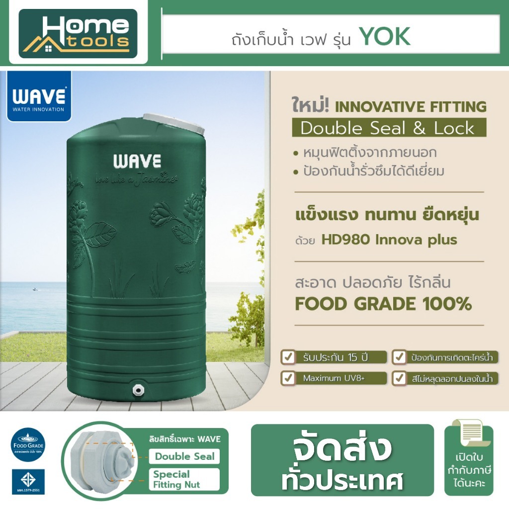 ** ถังเก็บน้ำ 1000-2000 ลิตร Wave รุ่น JASMINE / รุ่น YOK รับประกัน 15 ปี ป้องกันตะไคร่น้ำ UV8+