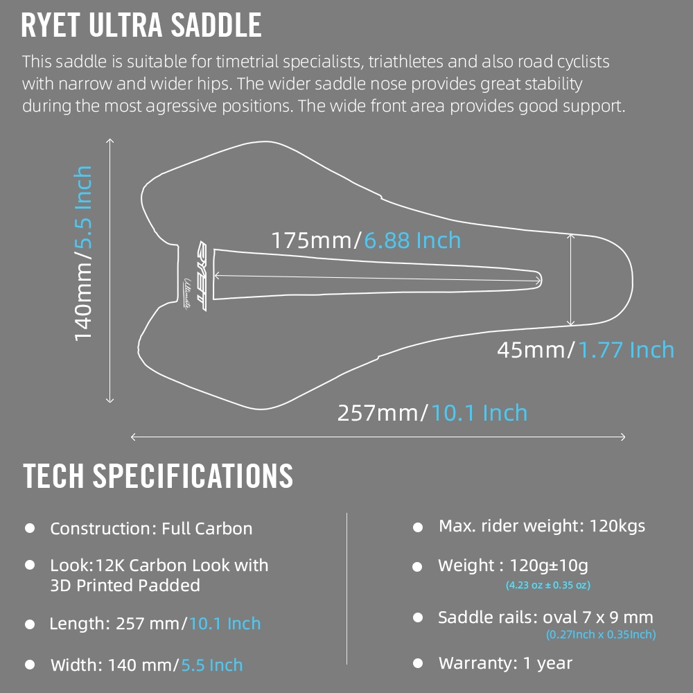 ข้อมูลจำเพาะทางเทคนิคของอานอาน RYET Saddle
