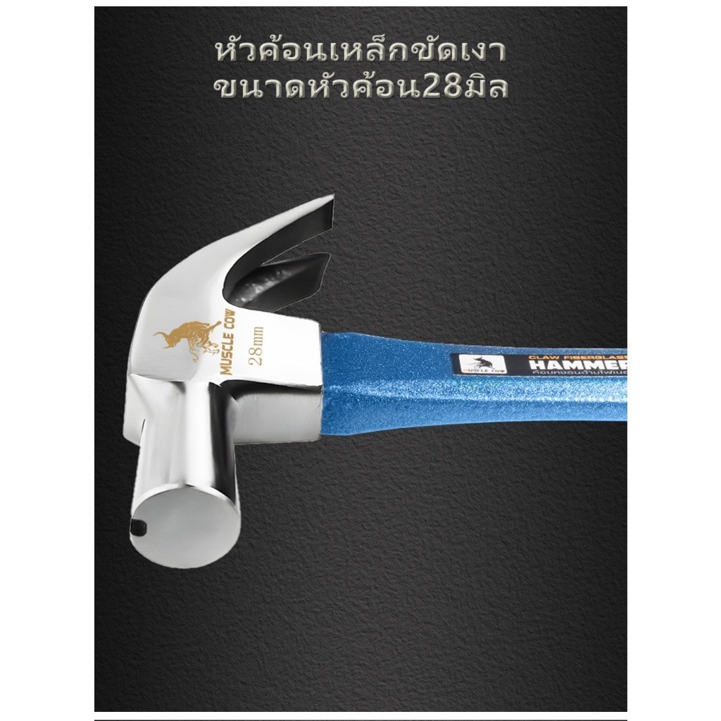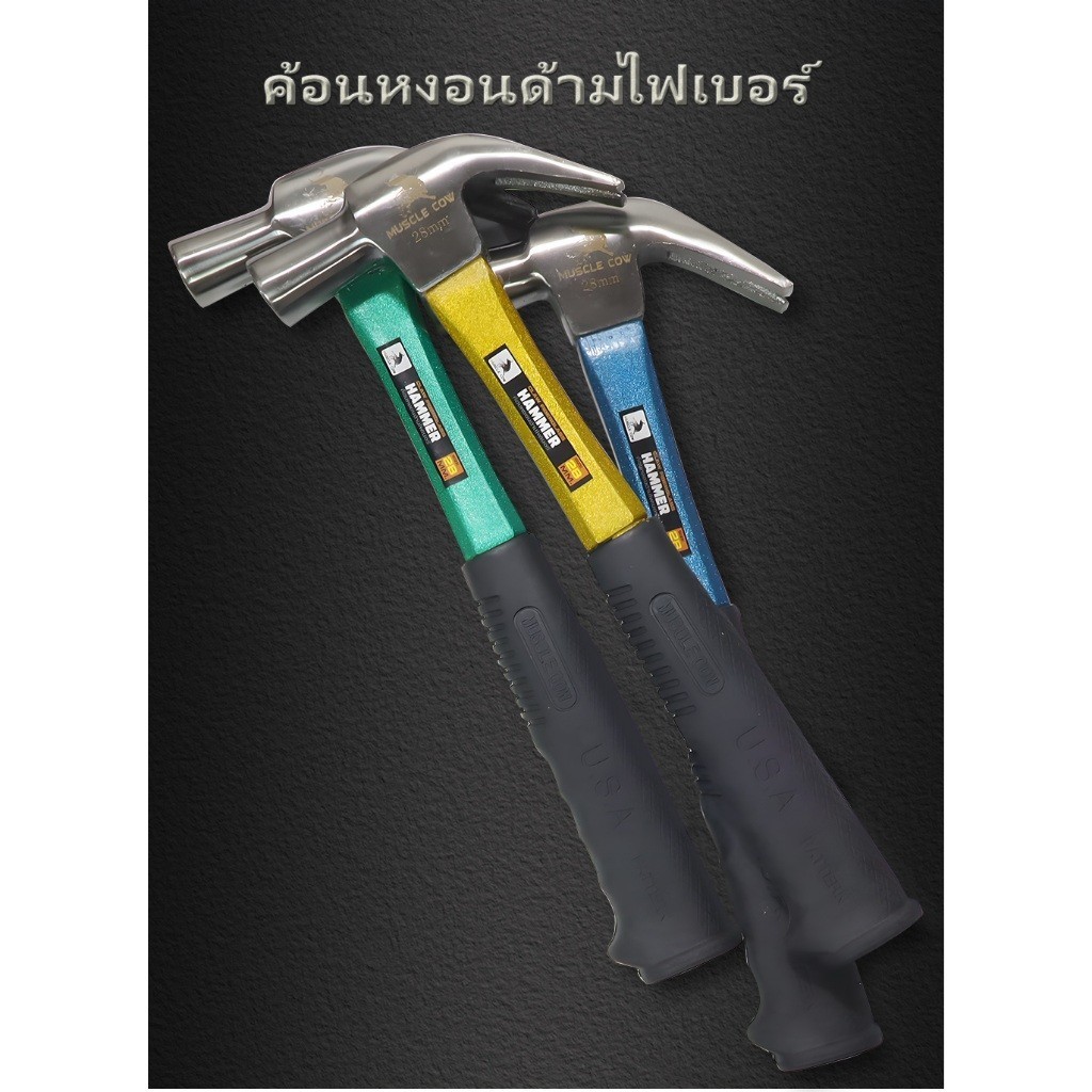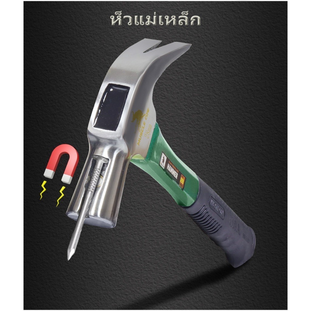 MUSCLE COW ค้อนก้ามปูแม่เหล็ก 28มม ด้ามไฟเบอร์กันลื่น สีเขียว แข็งแรง ใช้งานง่าย