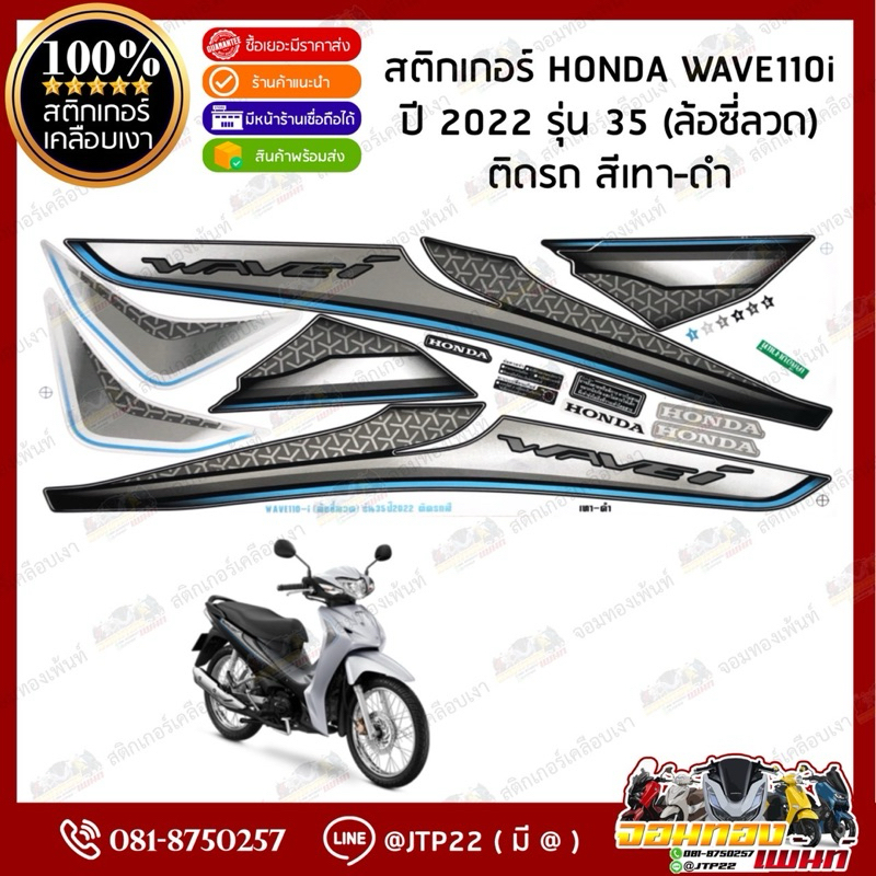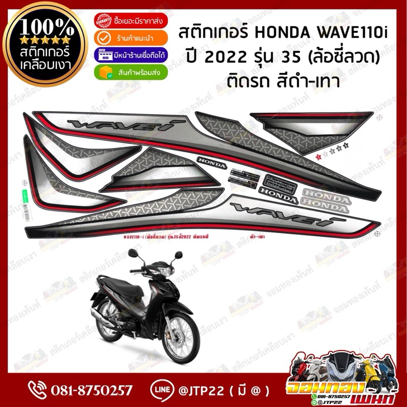 สติ๊กเกอร์ HONDA WAVE110I LED (ซี่ลวด) รุ่น35 ปี2022 ติดรถสี ดำเทา,แดงดำ,น้ำเงินดำ,เทาดำ