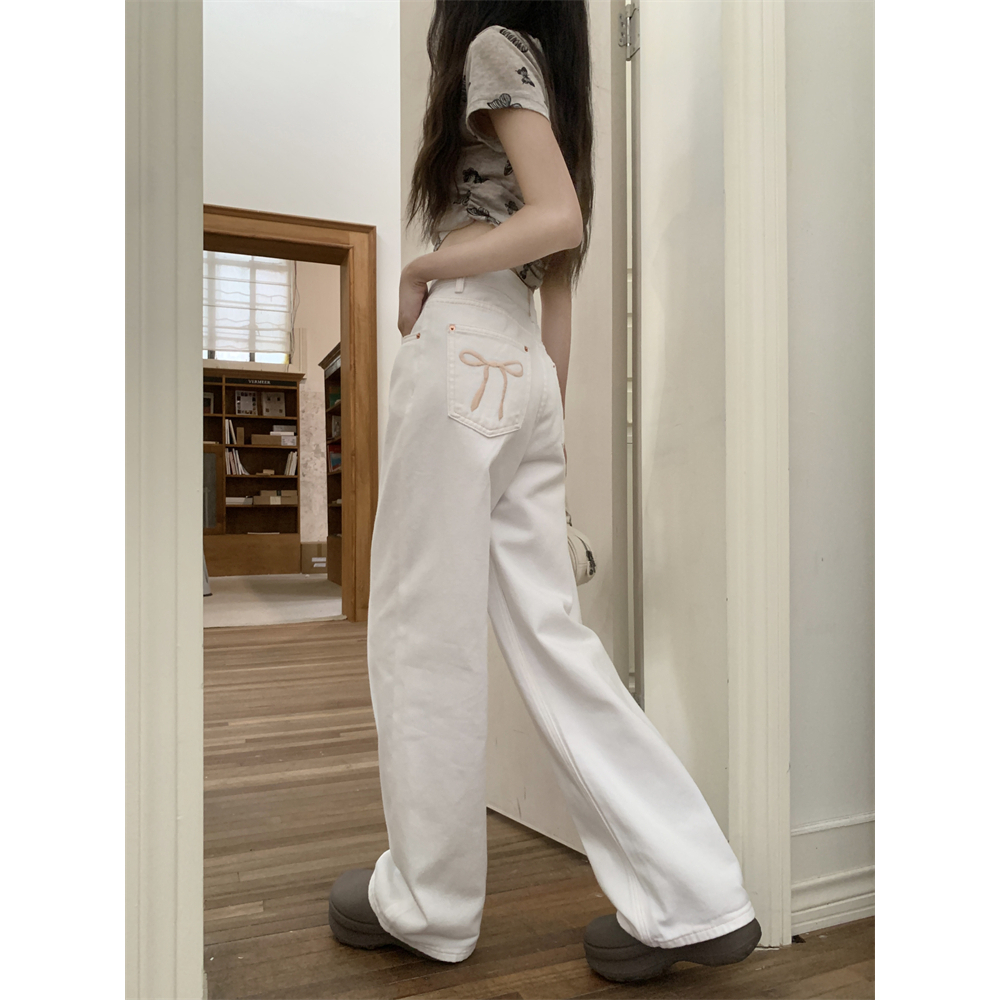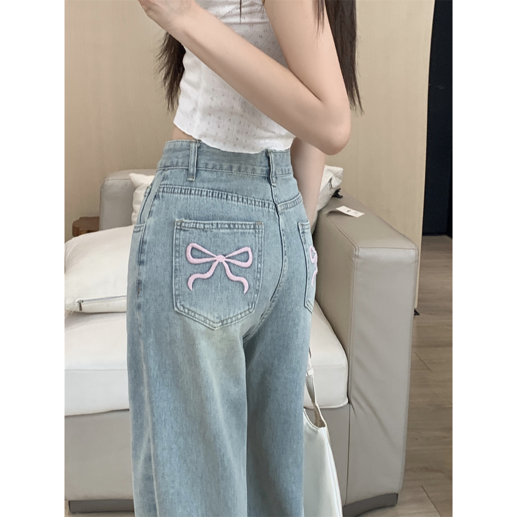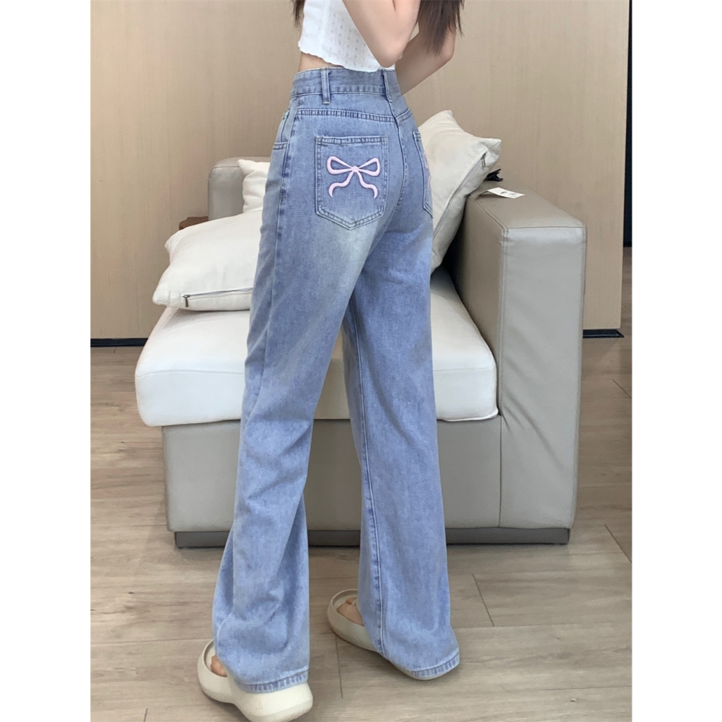 กางเกงกระบอก กาวเกงยีนส์ผู้หญิง งานเกาหลี เเทมชท์ยังไงก็สวย งานปักลายโบว์ ผ้ายืดได้ #1218