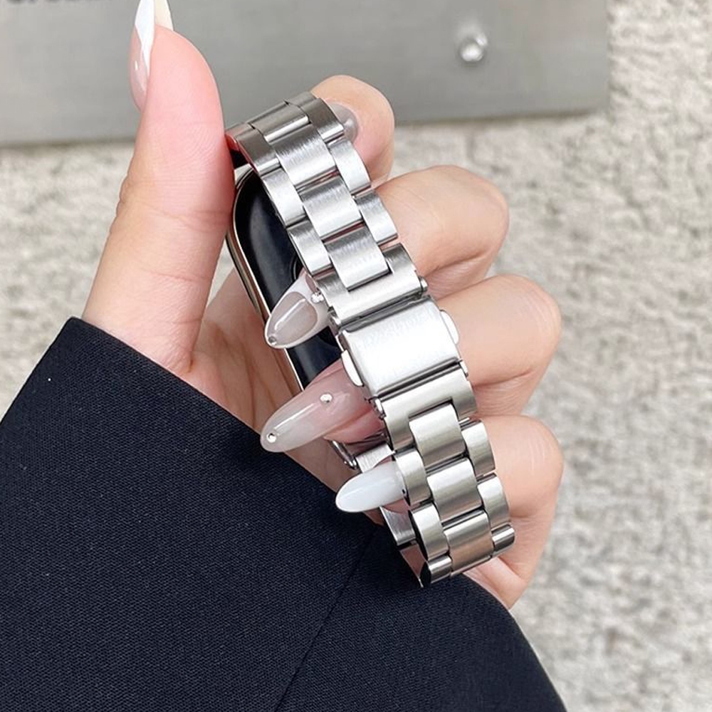 สายโลหะสแตนเลสสตีลสร้อยข้อมือห่วงอุปกรณ์เสริมสําหรับ Xiaomi Smart Band 10 9 8 / Mi Band 10 Ceramic Edition