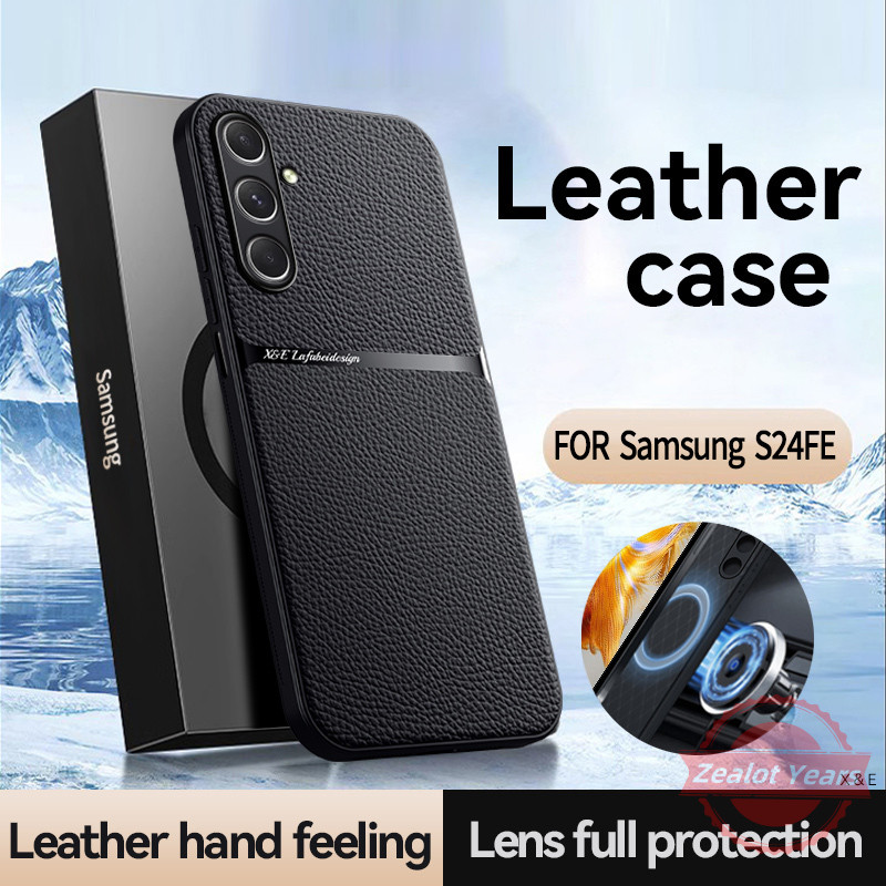 สําหรับ Samsung Galaxy S25 S24 FE Plus S25FE S24FE หรูหราหนัง Matte เคสโทรศัพท์เลนส์ปกป้องฝาครอบโทรศัพท์