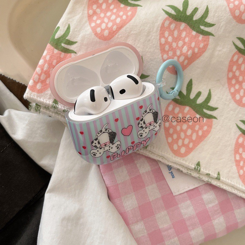 เคสป้องกันหูฟัง AirPods รุ่นที่ 3 ลายหัวใจสีม่วงลายดัลเมเชียน เข้ากันได้กับเคสหูฟัง Pro 2022 ไร้สาย 4 ชิ้น กันกระแทก