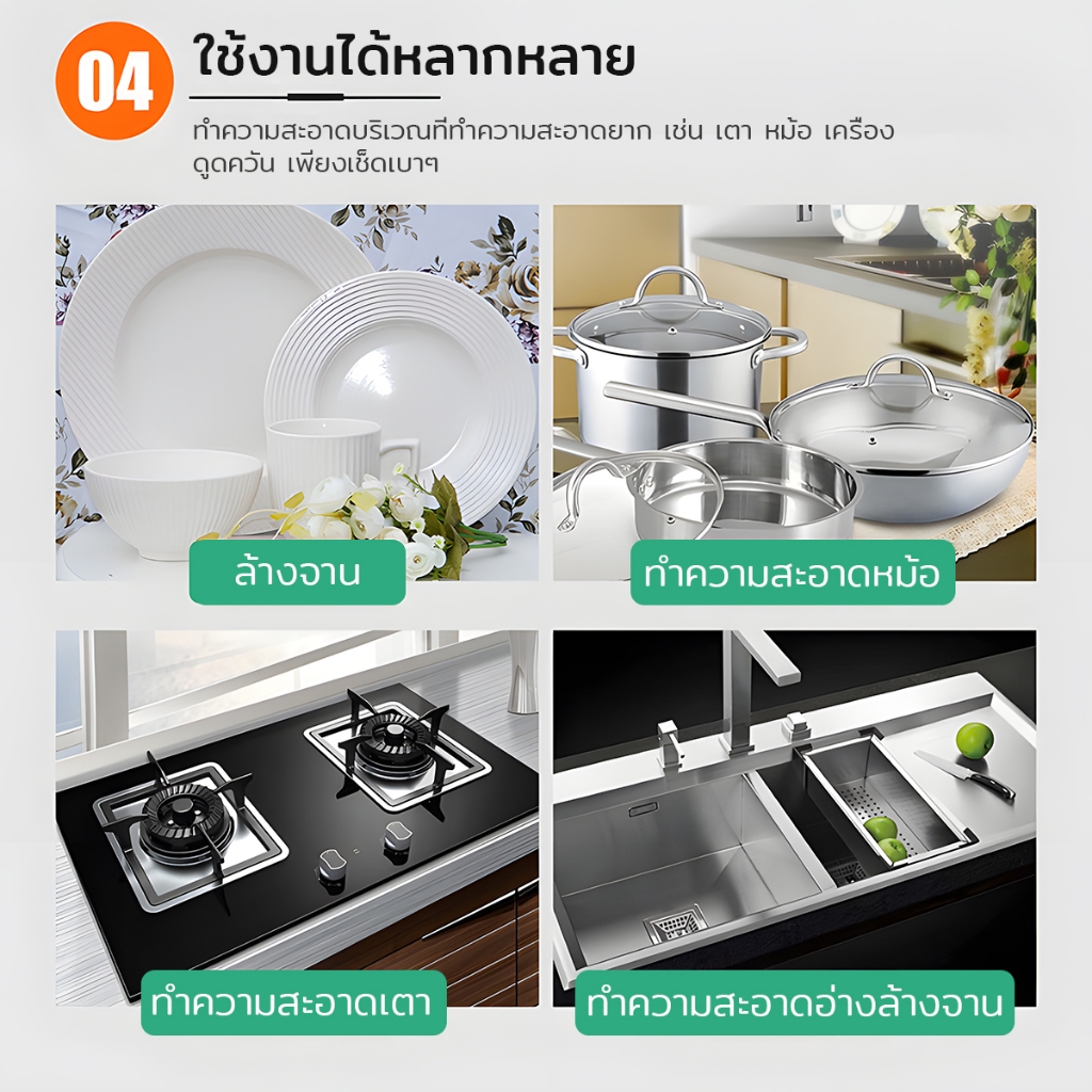 [การใช้งานผลิตภัณฑ์]: ขจัดคราบฝังแน่นจากมุมครัว เตา ก้นหม้อ ฯลฯ