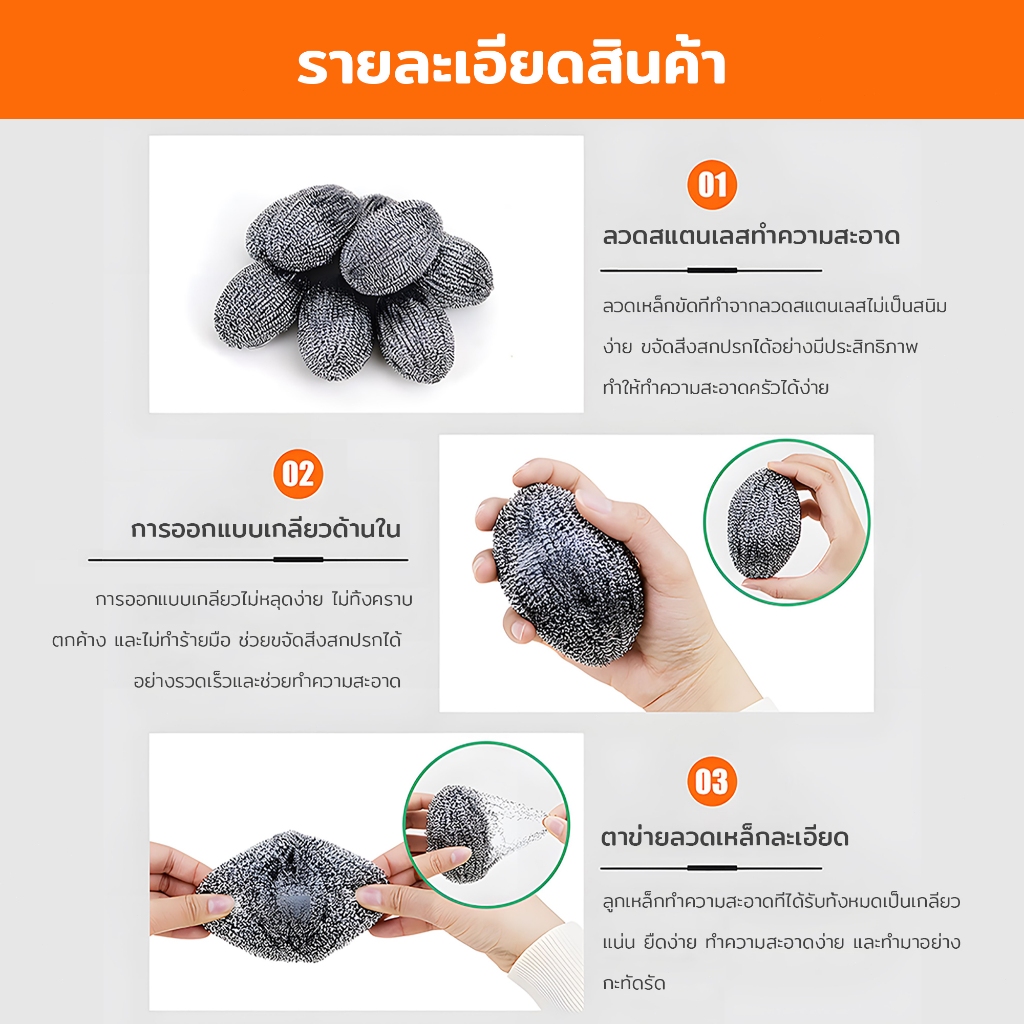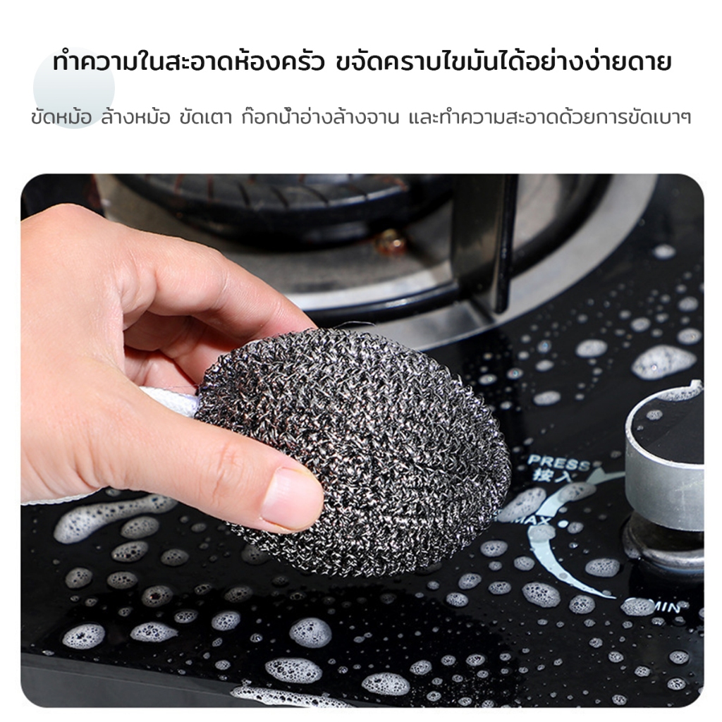 [คุณสมบัติผลิตภัณฑ์]: ไม่มีสนิม ไม่มีตะกรัน ไม่บาดมือขจัดคราบสกปรกได้ดี เหมาะแก่การทำความสะอาดในครัว