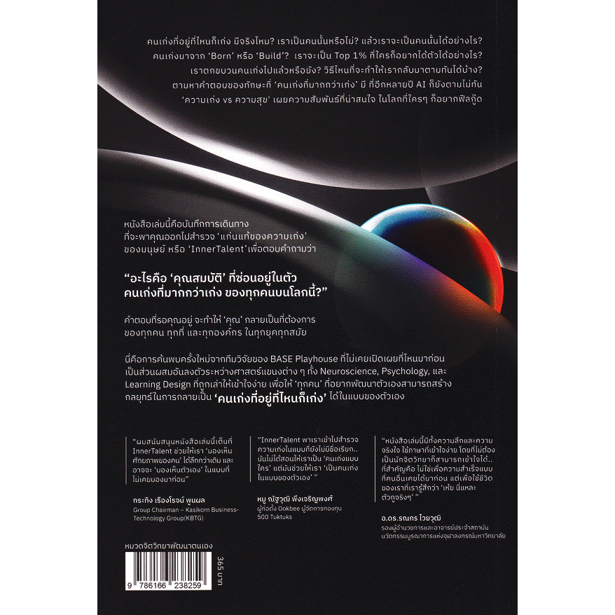 Inner Talent คนเก่งที่มากกว่าเก่งพร้อมก้าวสู่ Top 1% ที่ทุกคนต้องการ... ในยุคที่โลกหมุนเร็ว และการแข่งขันรุนแรง คำถามที่ผุดขึ้นในใจใครหลายคนคือเราจะเป็นคนเก่งที่ใครก็อยากร่วมงานด้วยได้อย่างไร?หนังสือ Inner Talent คนเก่งที่มากกว่าเก่งคือคำตอบที่คุณกำลังต