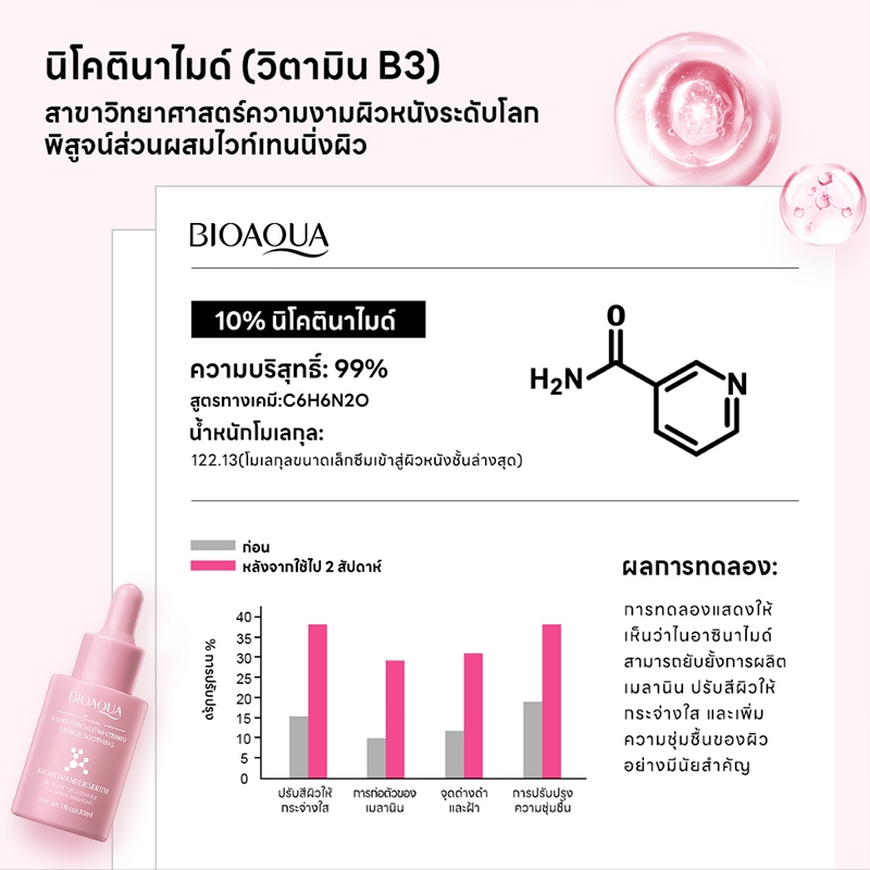 BIOAOUA ไวท์เทนนิ่ง เซรั่ม Niacinamide 10% 30ml หน้าขาว Bright ลดเลือนรอยสิว Essence Serum