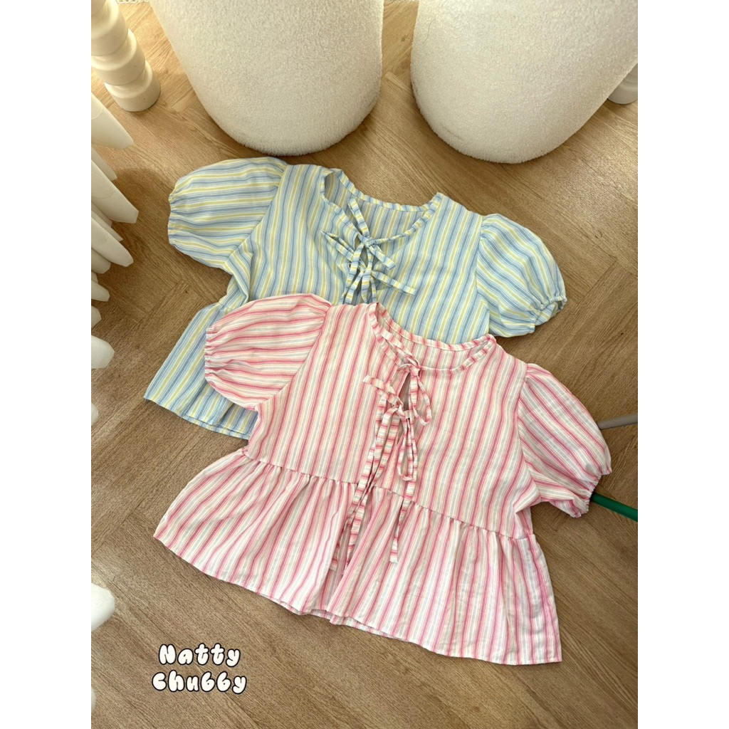 RAYNE.CLOSET | Sammy Top – เสื้อแขนตุ๊กตาแต่งเชือกผูกโบว์หน้าลายริ้ว (อก 38-50“)